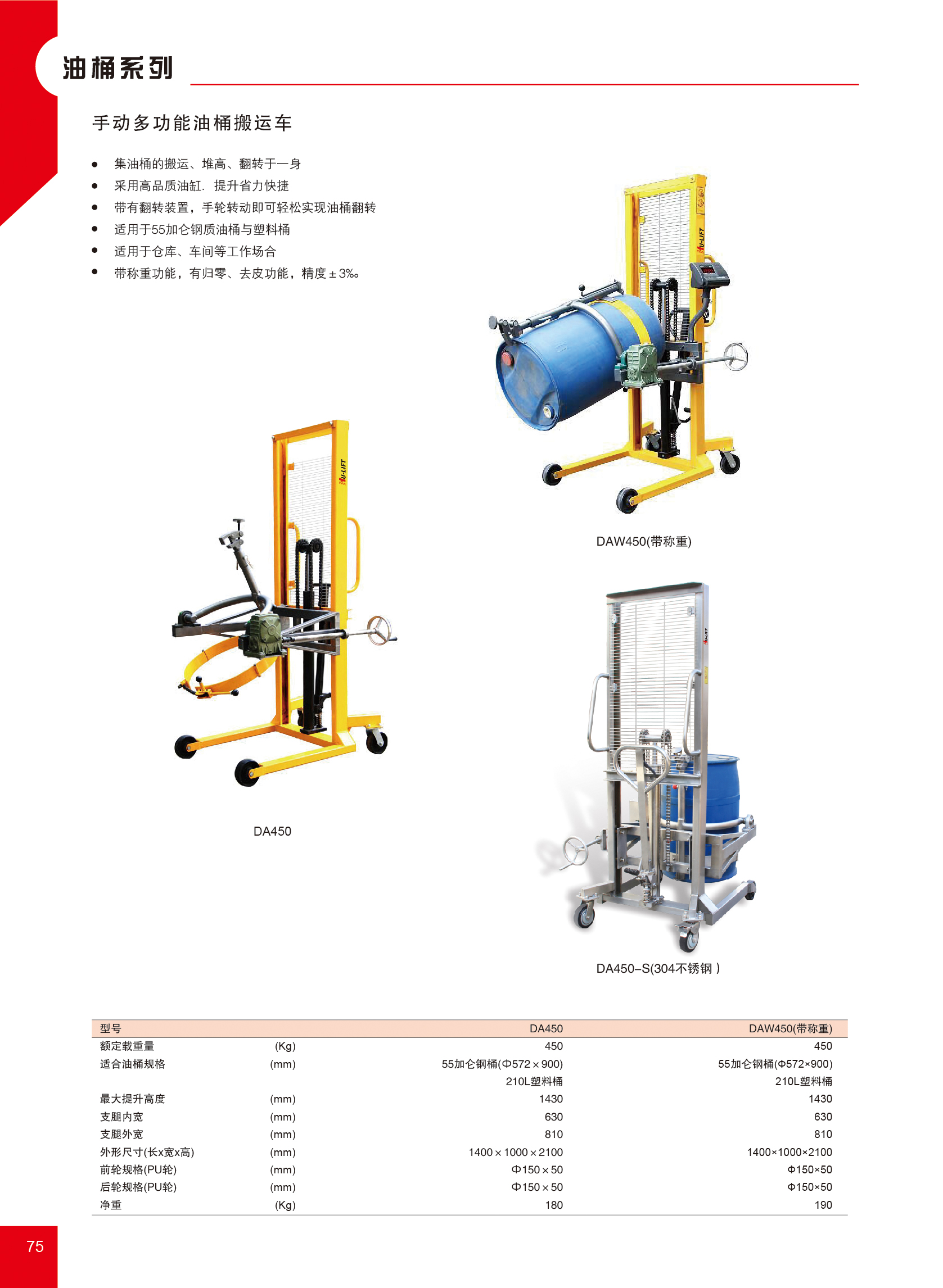 "手动多功能油桶搬运堆高车(通用型) DA450 1件"商品可能已被商家删除,您可查看其他相似商品!
