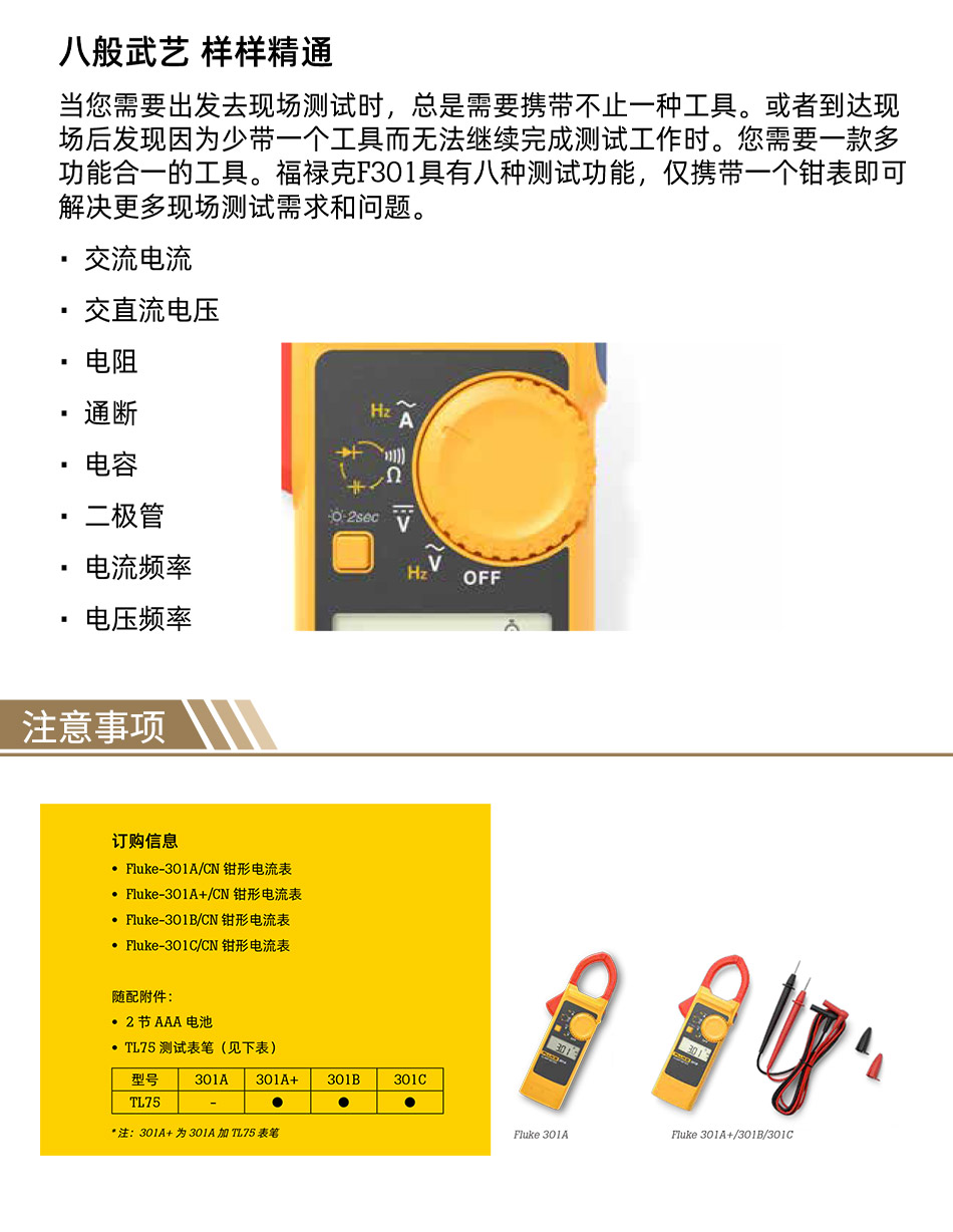 "F301刀锋系列钳形表 FLUKE-301A/CN 1个"商品可能已被商家删除,您可查看其他相似商品!