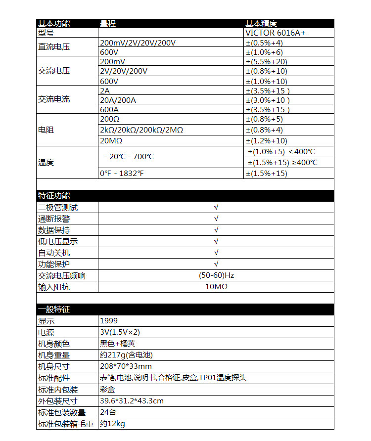 "VICTORY 6016C交流电流数字钳形表 1件"商品可能已被商家删除,您可查看其他相似商品!