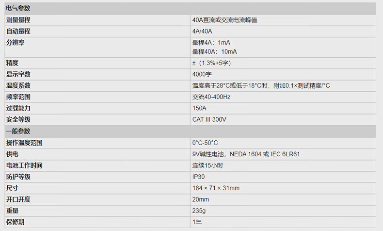 "342小电流钳形表4A/40A 1个"商品可能已被商家删除,您可查看其他相似商品!