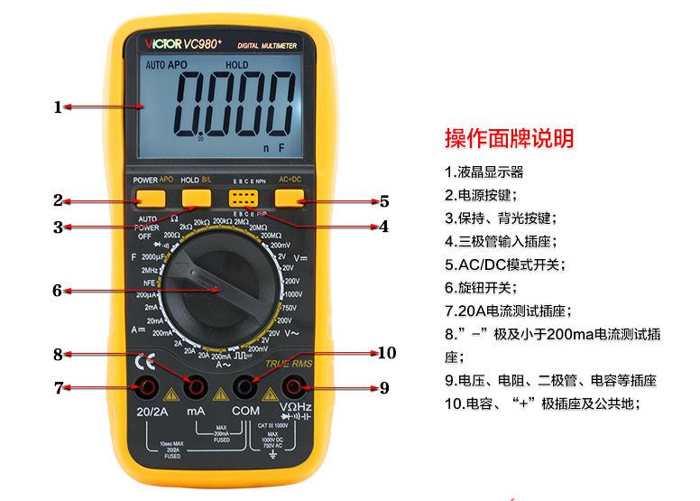 ·交流电流量程为200mA时,交流电流精度均为±(1.5%+15);