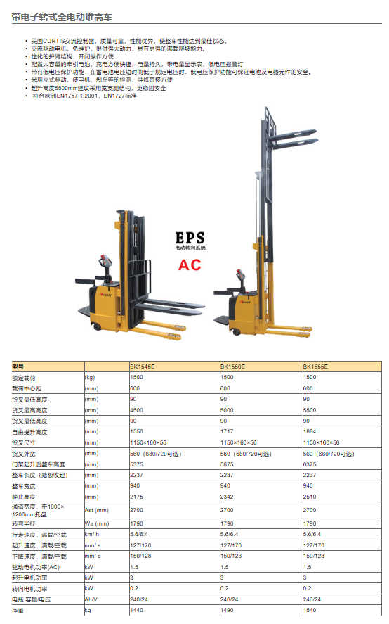 ・交流驱动电机免维护,提供强大动力,具有更强的满载爬坡能力