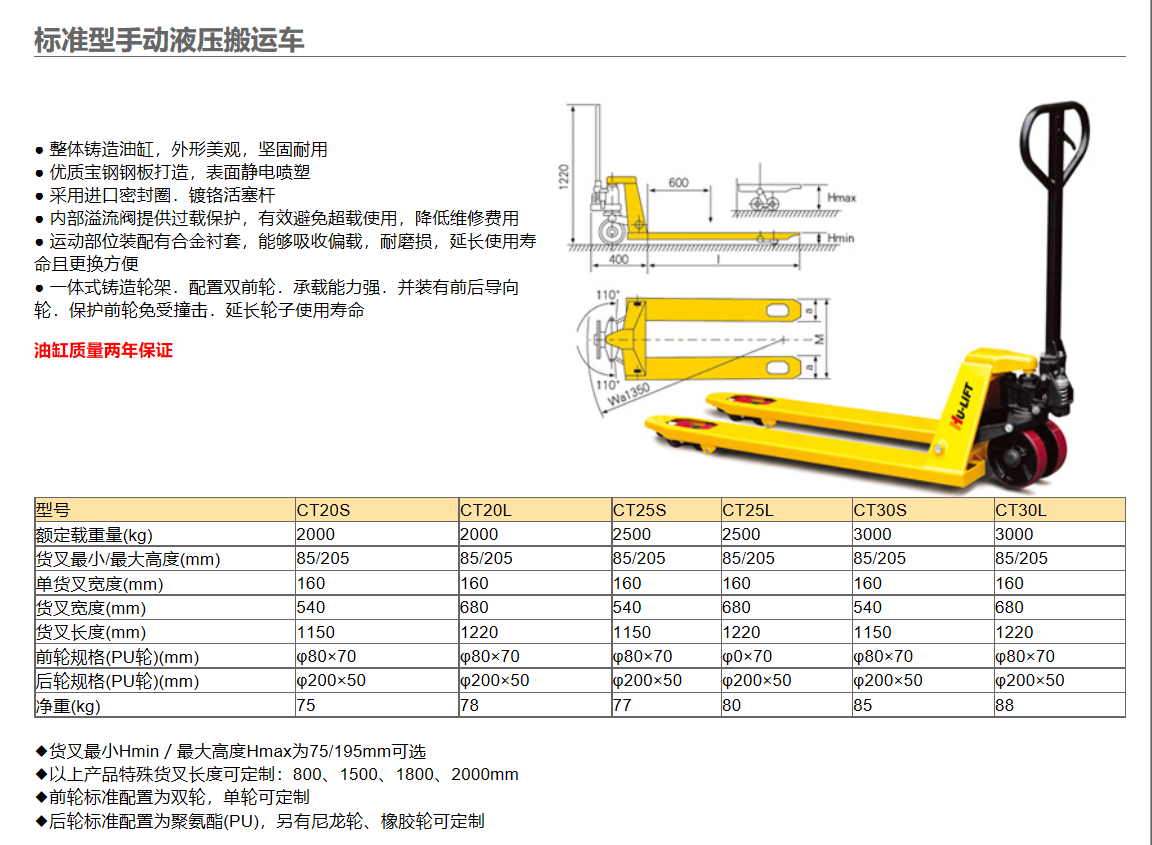 "标准型手动液压搬运车2T 货叉680×1220mm 聚氨酯双轮 1件"商品可能已被商家删除,您可查看其他相似商品!