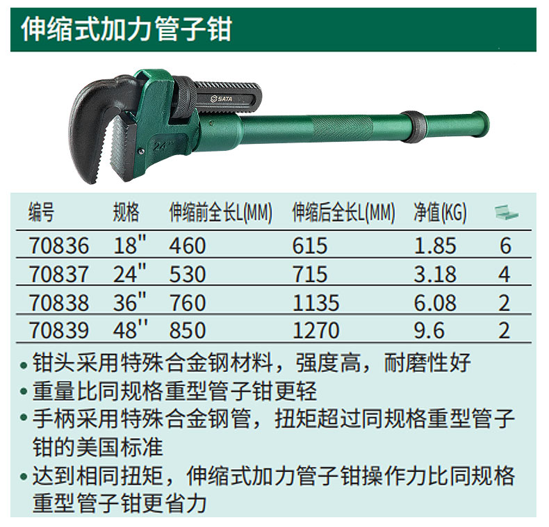 "Sata 伸缩式加力管子钳 18 70836 1把"商品可能已被商家删除,您可查看其他相似商品!