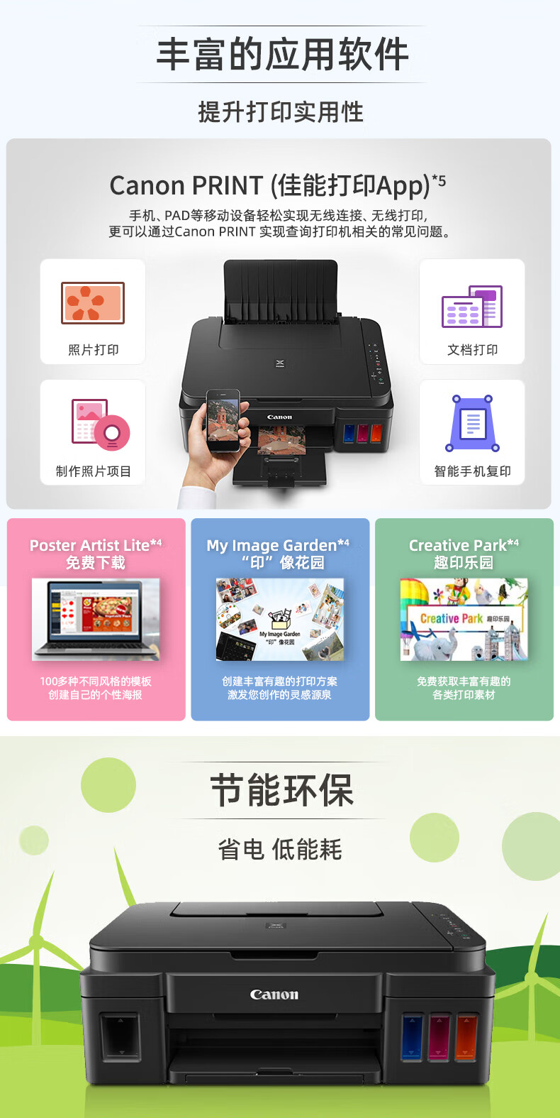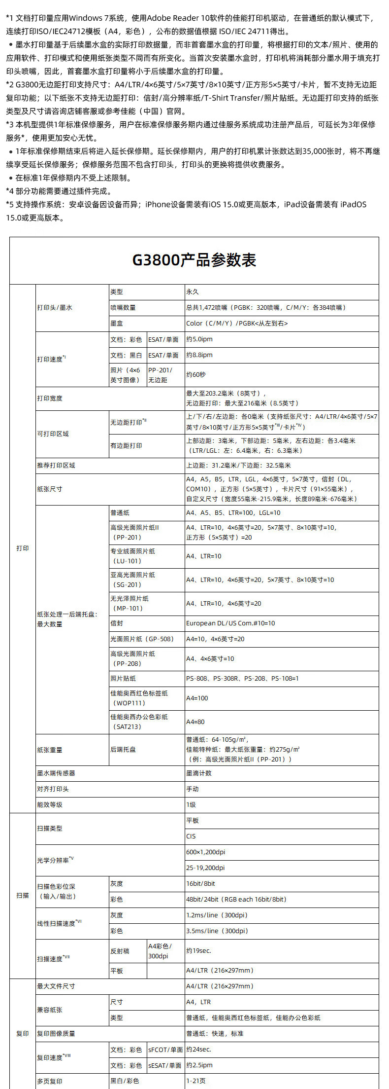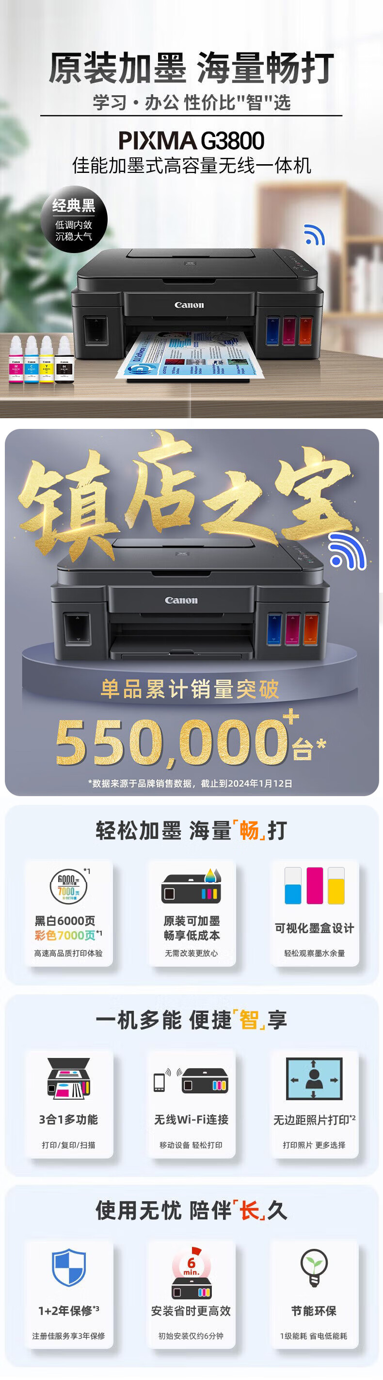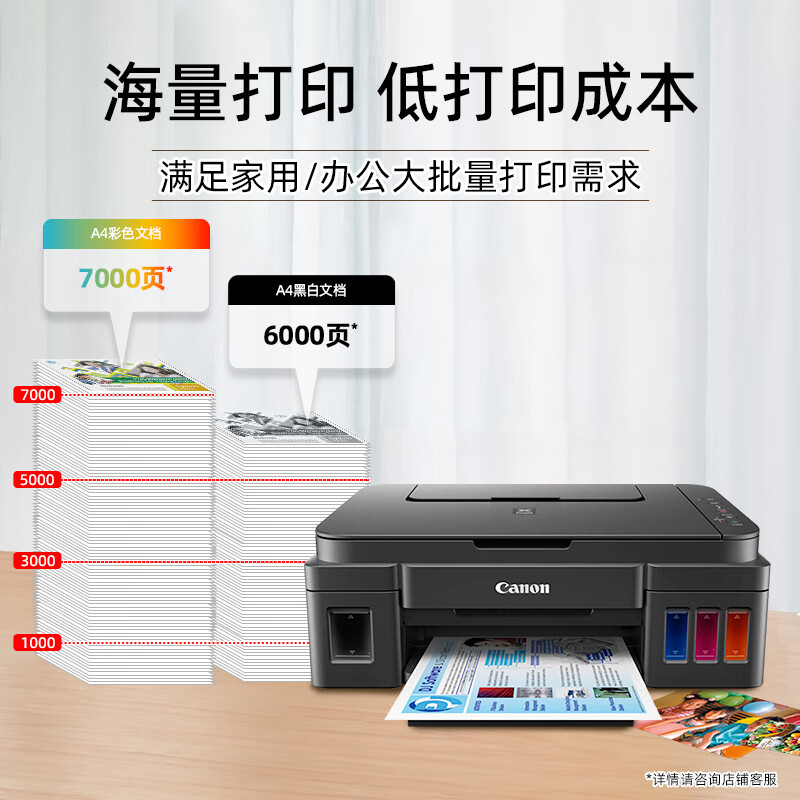 "佳能(Canon)G3800可加墨彩色喷墨学生打印机 无线家用 作业/照片打印 大印量 打印复印扫描多功能一体机"商品可能已被商家删除,您可查看其他相似商品!