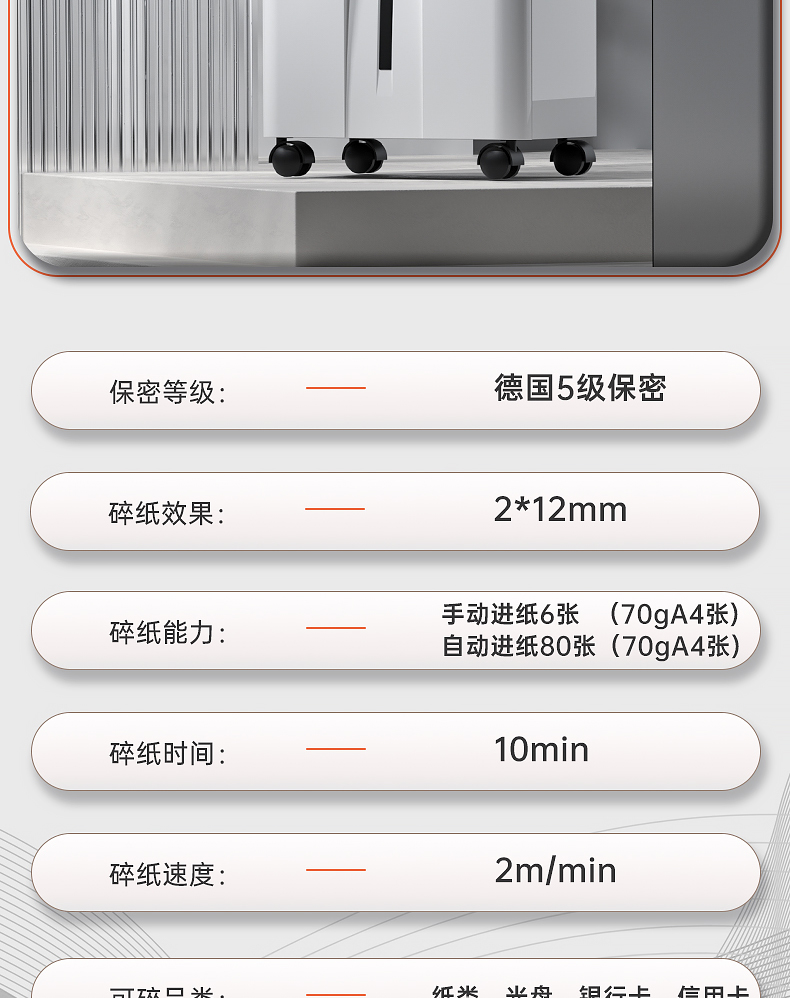 包装参数 : 80张自动碎 2m/min高速碎纸 |