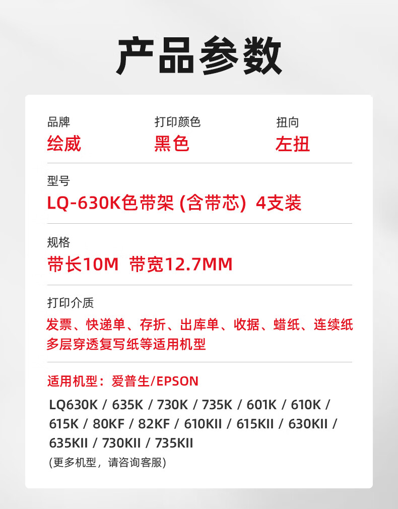 "绘威LQ630K/LQ730K色带架4支装 适用爱普生EPSON LQ630K LQ635K LQ730K LQ735K II LQ80KF打印机"商品可能已被商家删除,您可查看其他相似商品!