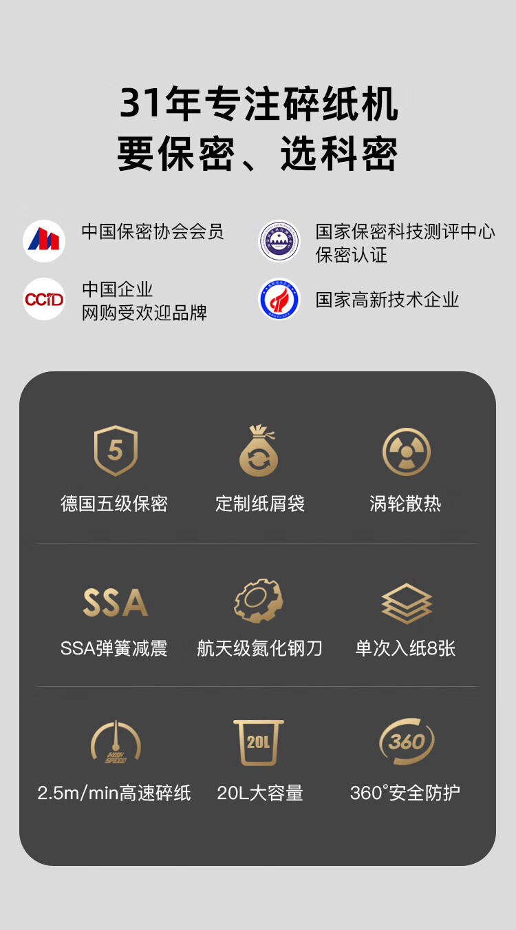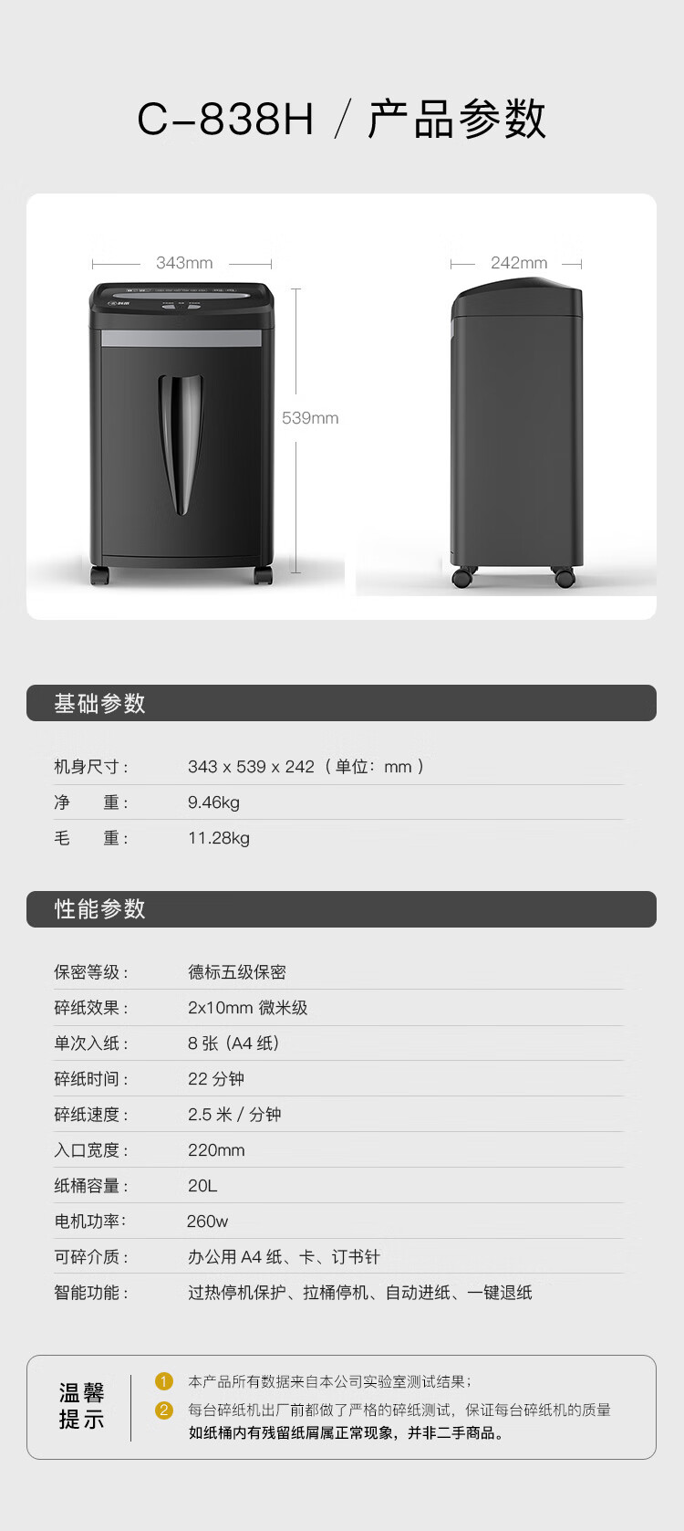 "科密碎纸机 5级高保密商用办公碎纸机 文件粉碎机 C-838H"商品可能已被商家删除,您可查看其他相似商品!