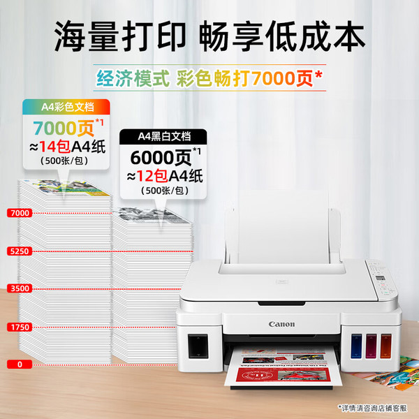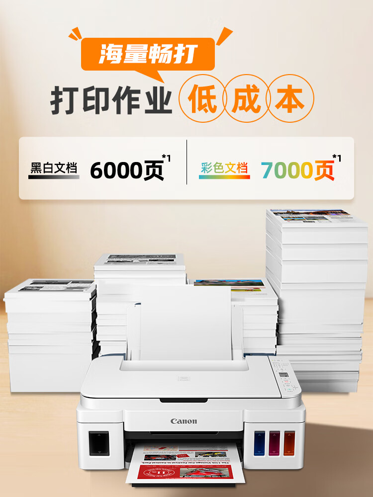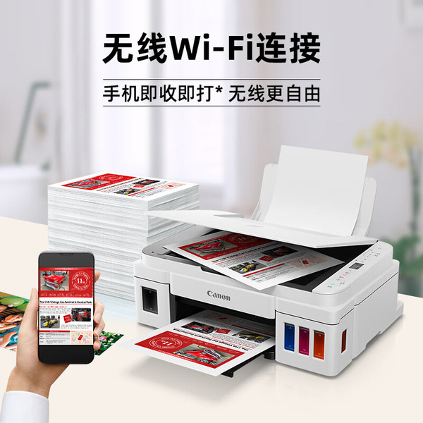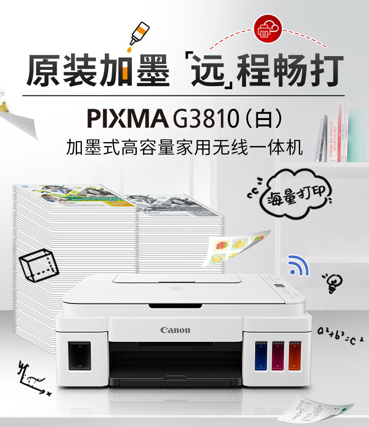 "佳能(Canon)G3810 白 大容量可加墨彩色多功能无线打印复印扫描一体机照片学生手机无线 【G3810 白】3in1-无线打印-7000页 官方标配"商品可能已被商家删除,您可查看其他相似商品!