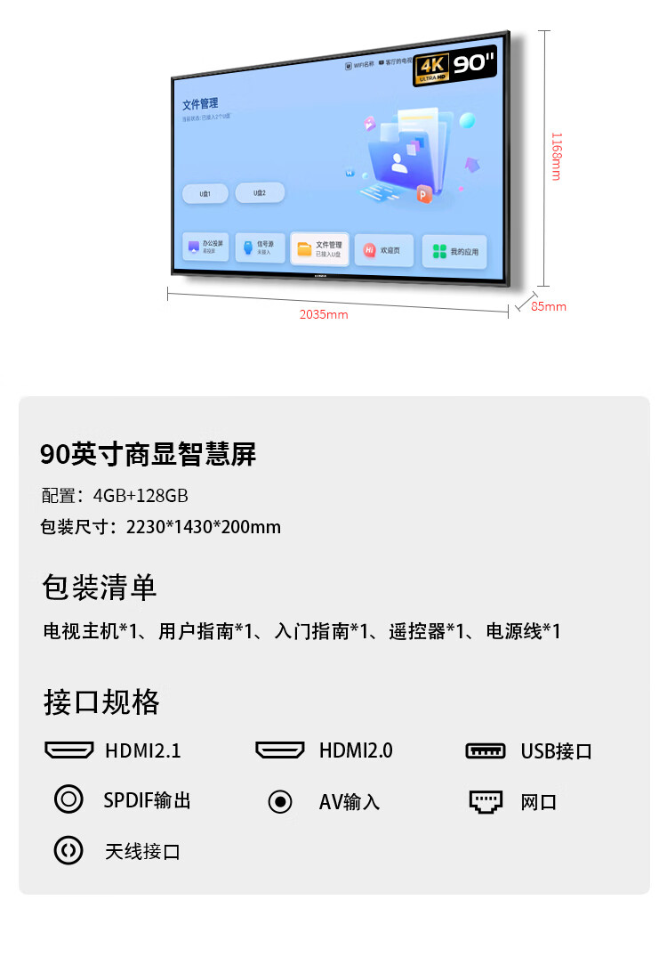 "康佳(KONKA)智能会议电视 无线投屏 4K超清 4+128GB 90英寸 4K推车90AF1"商品可能已被商家删除,您可查看其他相似商品!