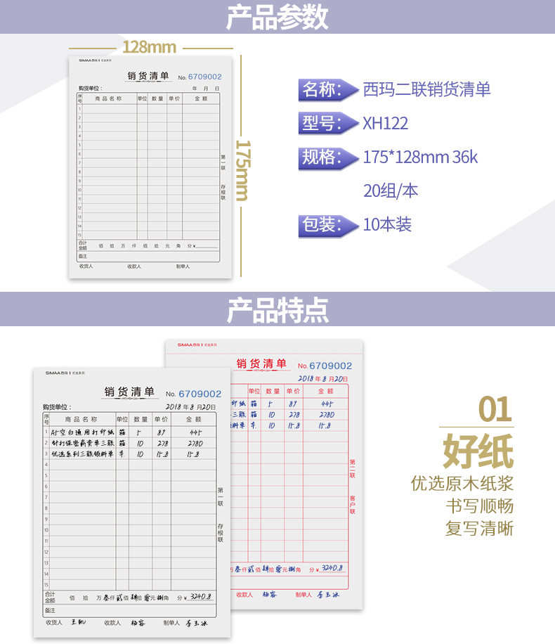 "西玛(SIMAA) 10本装 二联销货清单36k 175*128mm 20组/本 XH122送货单销货单出入库单"商品可能已被商家删除,您可查看其他相似商品!