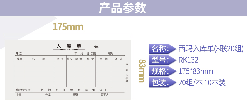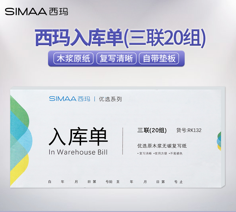 "西玛(SIMAA)RK132三联入库单 54K 175×83mm 20组10本装 优选时尚版 无碳复写销售入库进货单据"商品可能已被商家删除,您可查看其他相似商品!