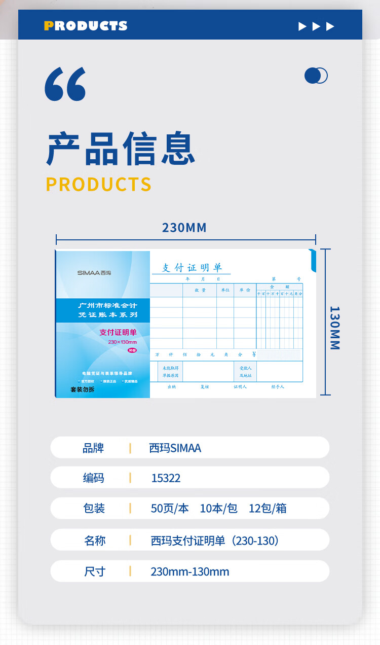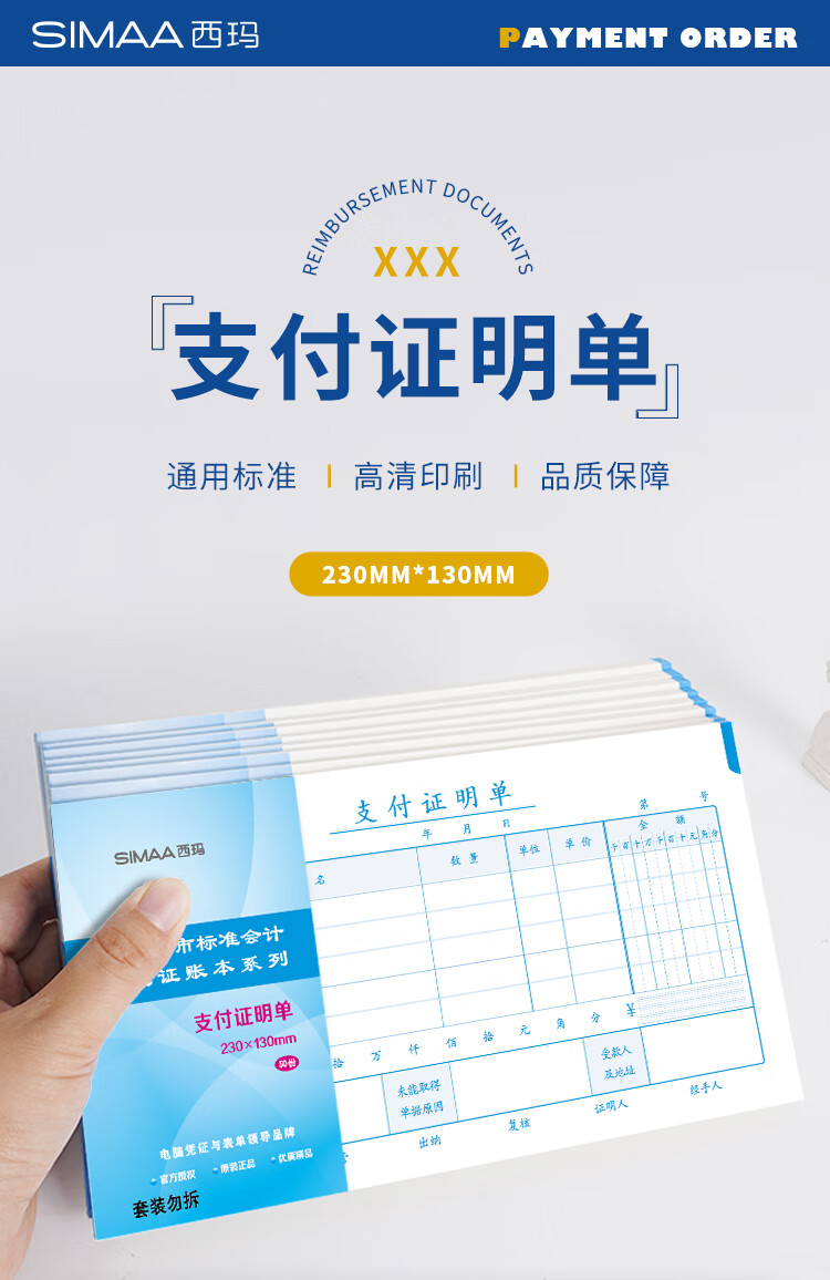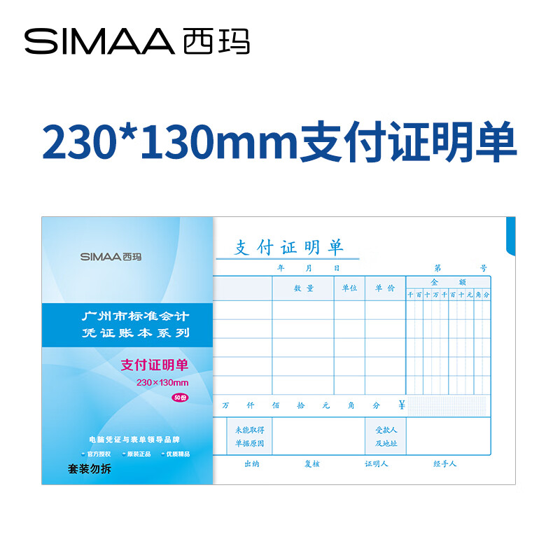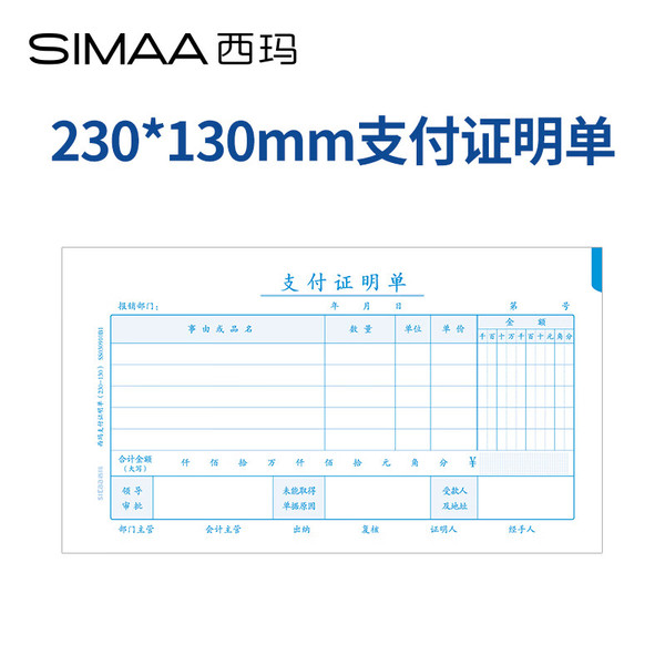 "西玛(SIMAA)支付证明单 广州版格式 230*130mm 50页/本财务费用报销粘贴单据会计记账凭证单"商品可能已被商家删除,您可查看其他相似商品!