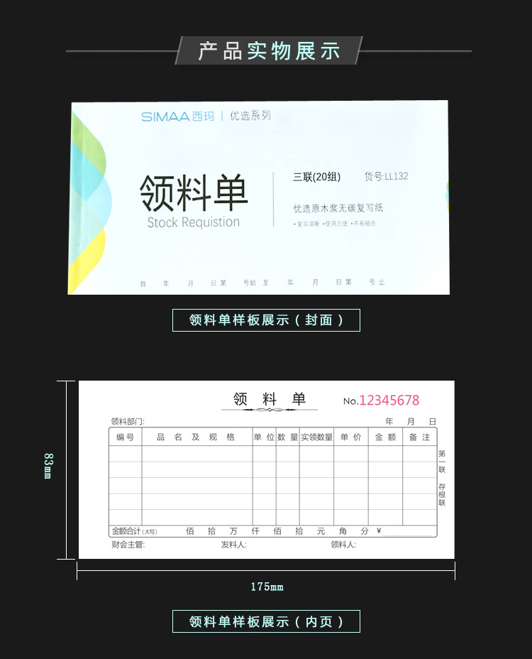 "西玛(SIMAA)LL132三联领料单20组 54K175*83mm 10本/包 无碳复写 带撕裂线 送货出入库收料单"商品可能已被商家删除,您可查看其他相似商品!