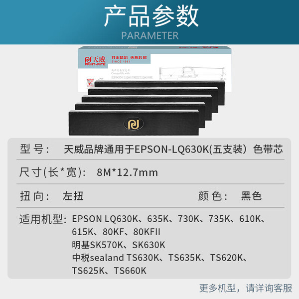 "天威LQ630K色带芯5支装适用爱普生LQ615KII 630KII 615K 635K 730K 730KII 735KII 610KII 635KII 80KF"商品可能已被商家删除,您可查看其他相似商品!