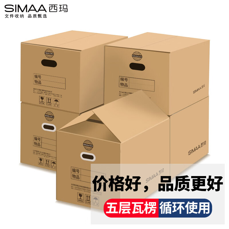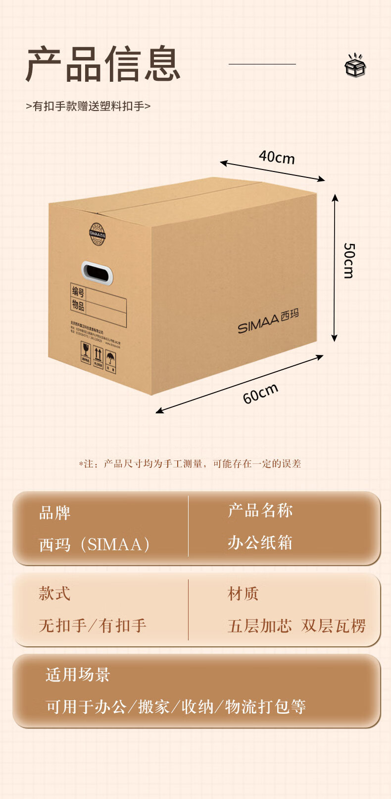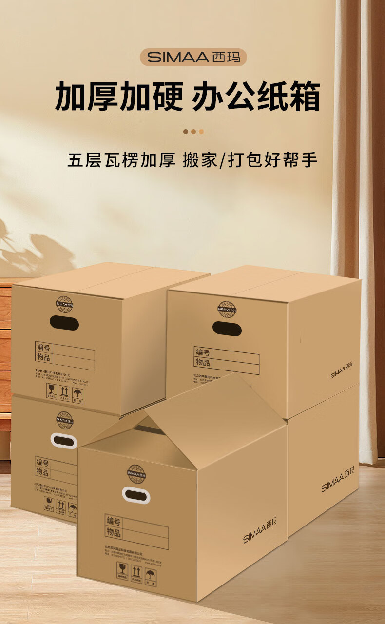"西玛 办公纸箱【五层瓦楞加厚】收纳箱60*40*50cm 有扣手 打包箱"商品可能已被商家删除,您可查看其他相似商品!