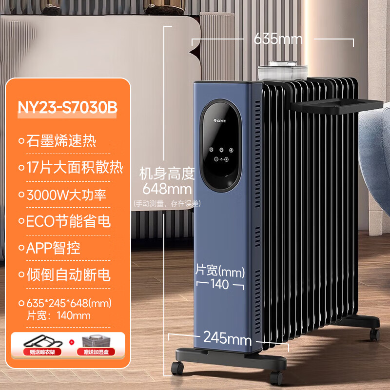 "格力(GREE)石墨烯取暖器17片电油汀家用全屋取暖电暖气片立式卧室客厅落地节能电暖器WIFI遥控 NY23-S7030B"商品可能已被商家删除,您可查看其他相似商品!