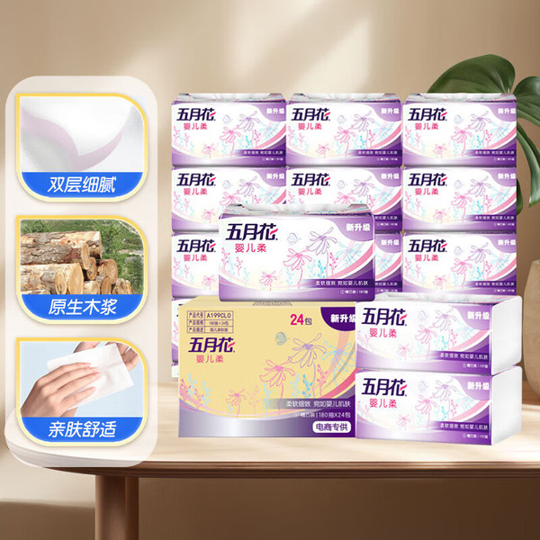 "五月花(May Flower)抽纸 2层180抽*24包S码软抽 柔软亲肤面巾纸 整箱装"商品可能已被商家删除,您可查看其他相似商品!