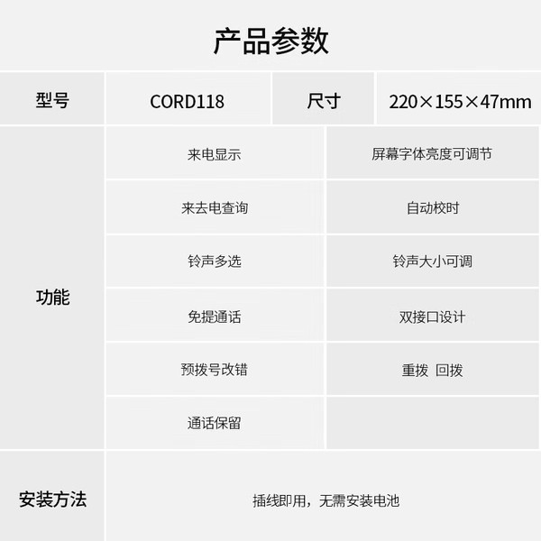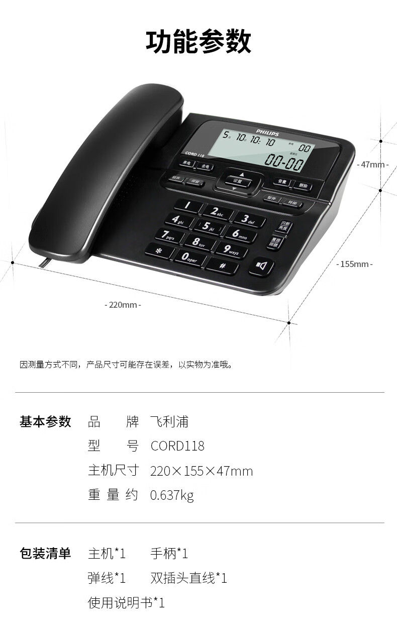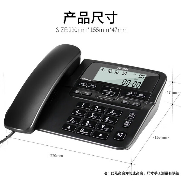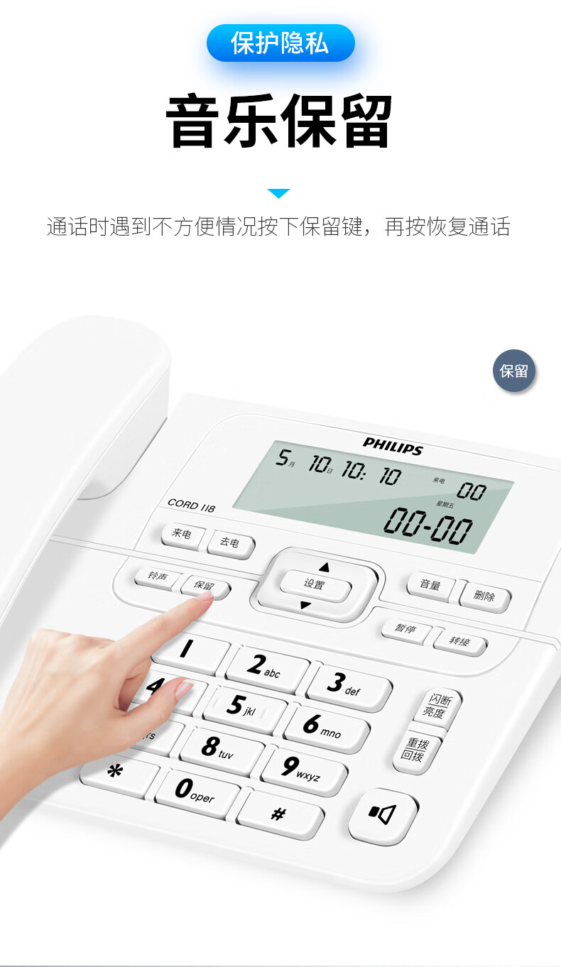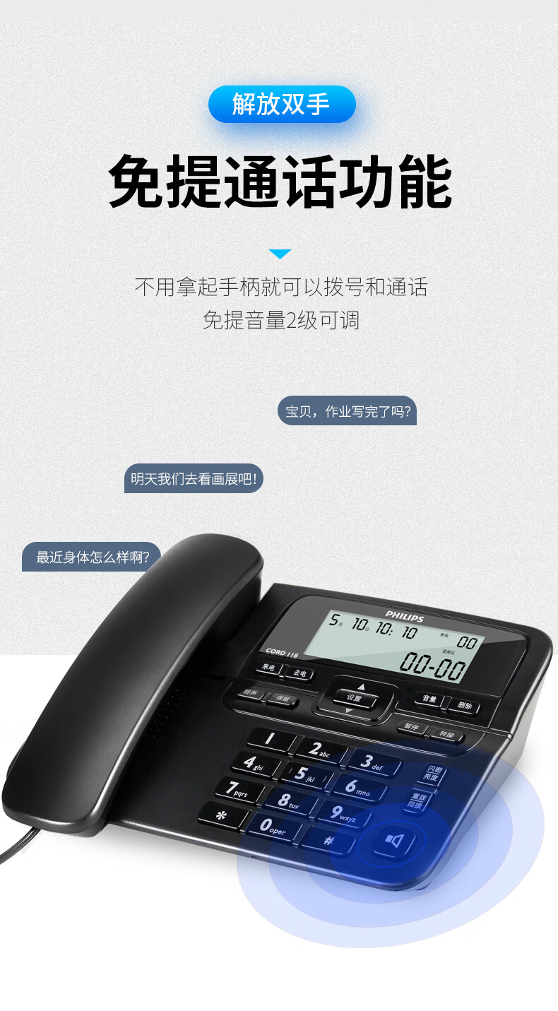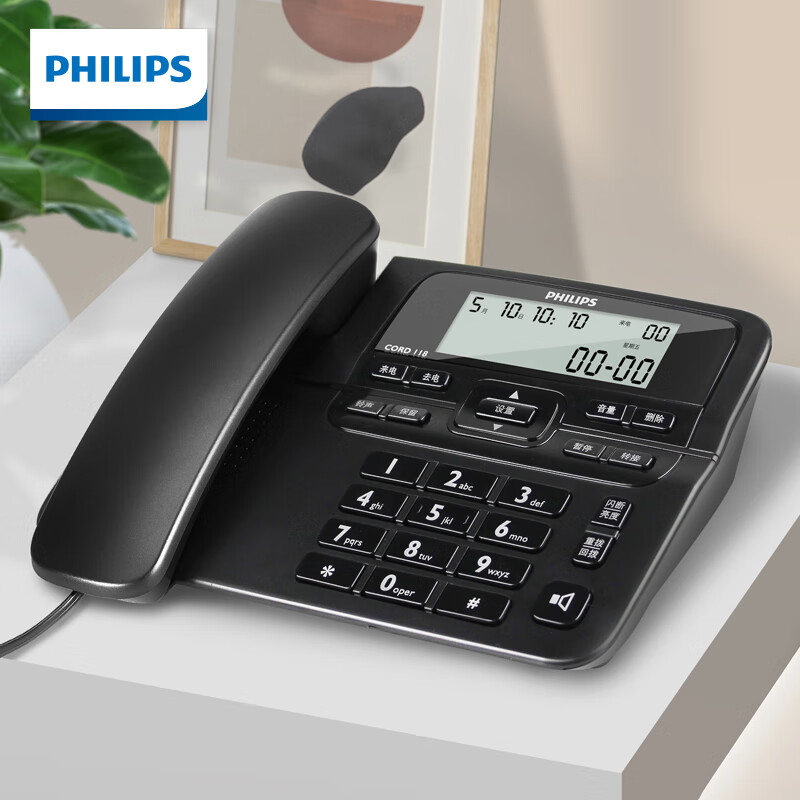 "飞利浦(PHILIPS)电话机座机 固定电话 办公家用 家庭有线电话 来电显示 双接口 免电池 CORD118黑色"商品可能已被商家删除,您可查看其他相似商品!