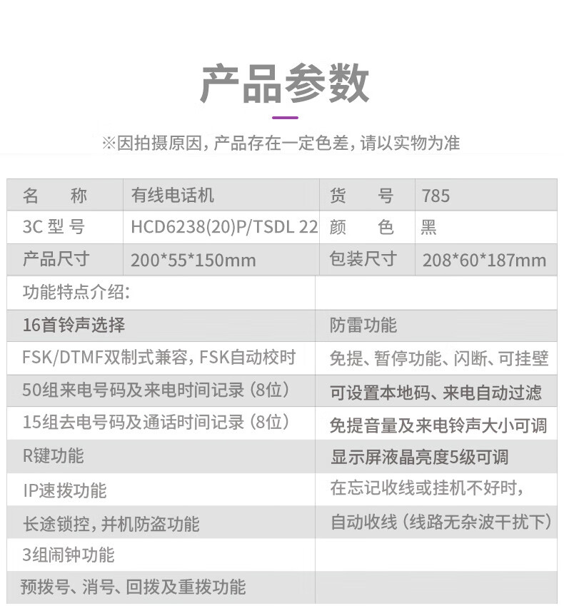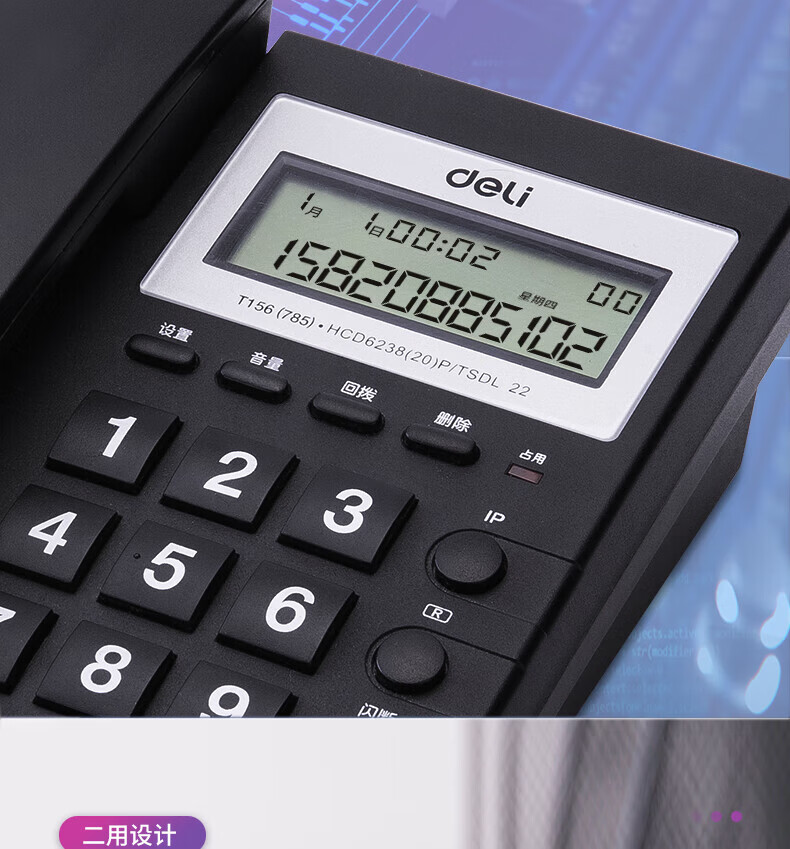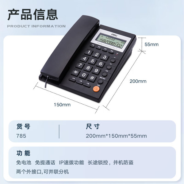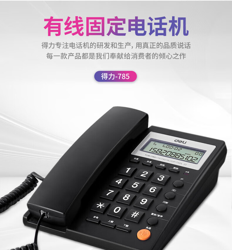 "得力(deli)电话机座机 固定电话 办公家用 免提通话 可接分机 785黑"商品可能已被商家删除,您可查看其他相似商品!