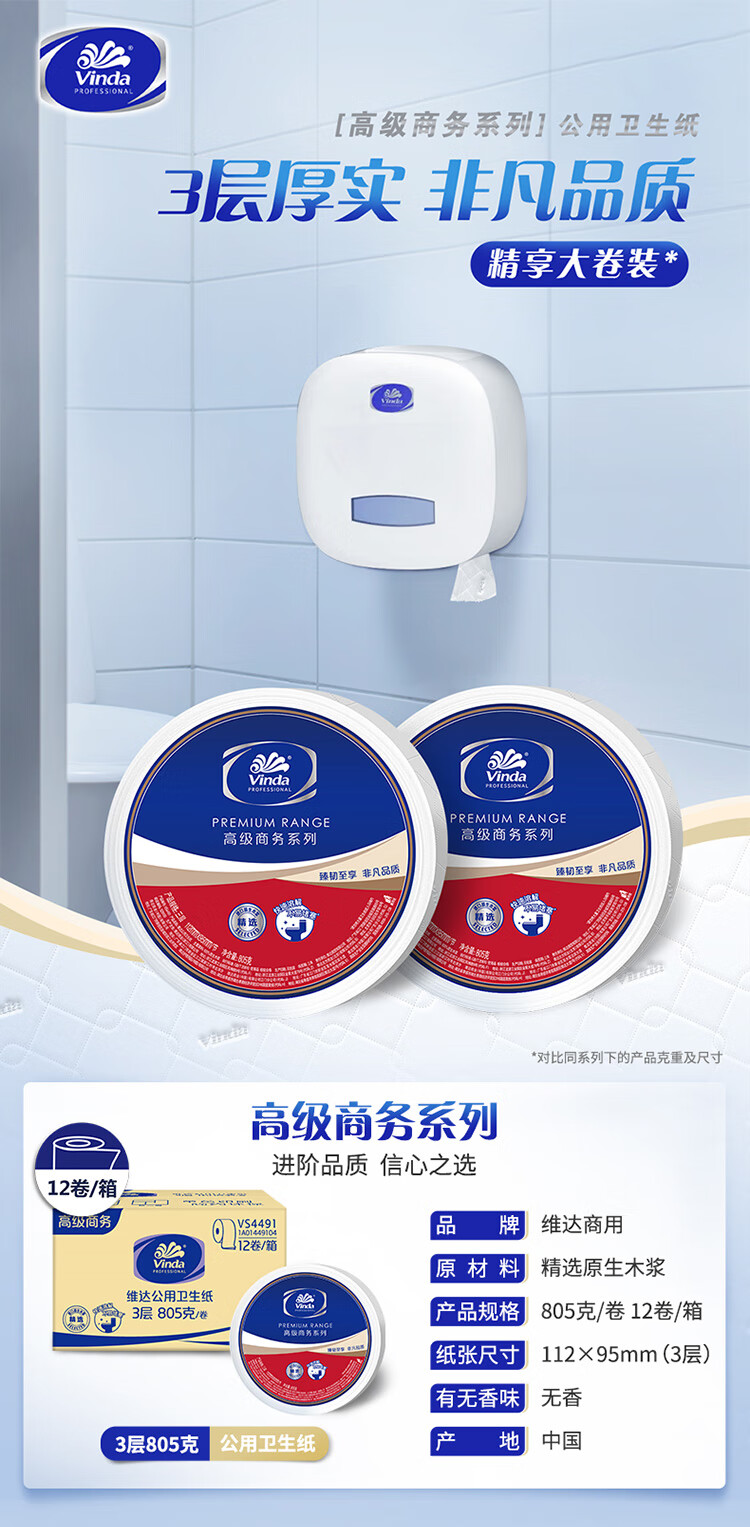 "维达有芯大卷纸3层805克*12卷整箱商用大盘纸公用卷筒纸商务"商品可能已被商家删除,您可查看其他相似商品!