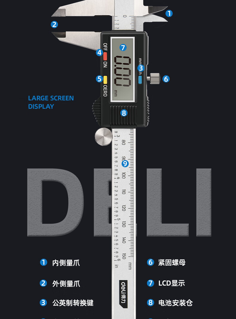 "得力(deli)高精度游标卡尺高清大屏数显电子尺不锈钢精密尺符合国标150mm"商品可能已被商家删除,您可查看其他相似商品!
