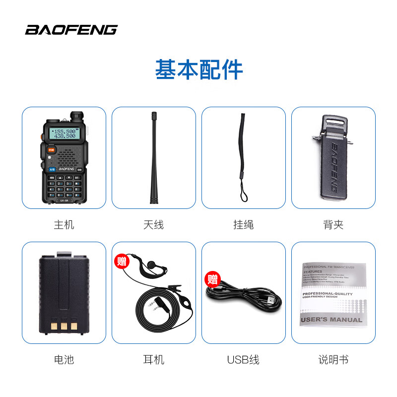 "宝锋(BAOFENG) UV-5R升级版对讲机 专业商用民用大功率远距离 无线调频UV双段手台"商品可能已被商家删除,您可查看其他相似商品!