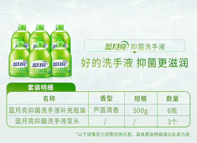 "蓝月亮抑菌洗手液除菌芦荟滋润 500gX6瓶补充装 LYL-500g*6"商品可能已被商家删除,您可查看其他相似商品!