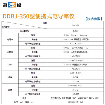 "雷磁DDS-11A台式数显电导率仪实验室DDB-303A便携水质分析测试检测仪 1 DDBJ-350(便携式)"商品可能已被商家删除,您可查看其他相似商品!