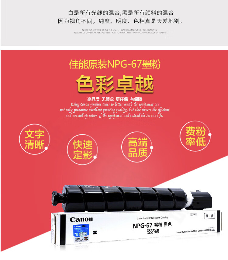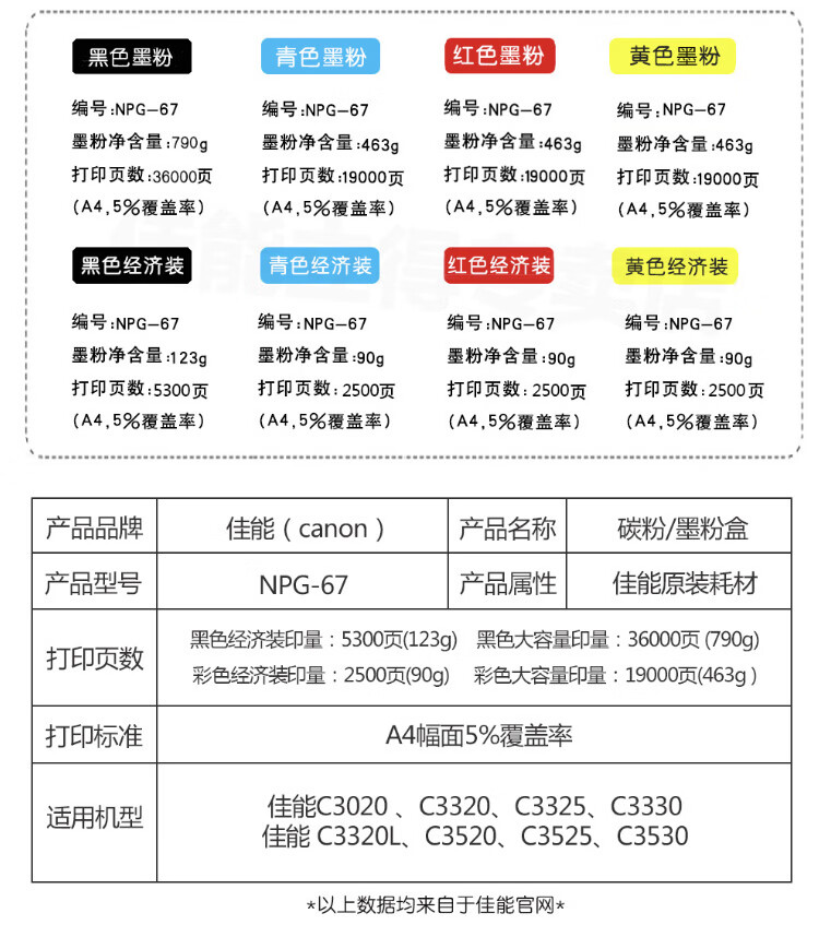 "佳能(Canon)NPG-67L Y黄色经济装原装墨粉盒(C33/35/3020/25/3120/3125/37系列/3226/3222/3130/38系列)"商品可能已被商家删除,您可查看其他相似商品!
