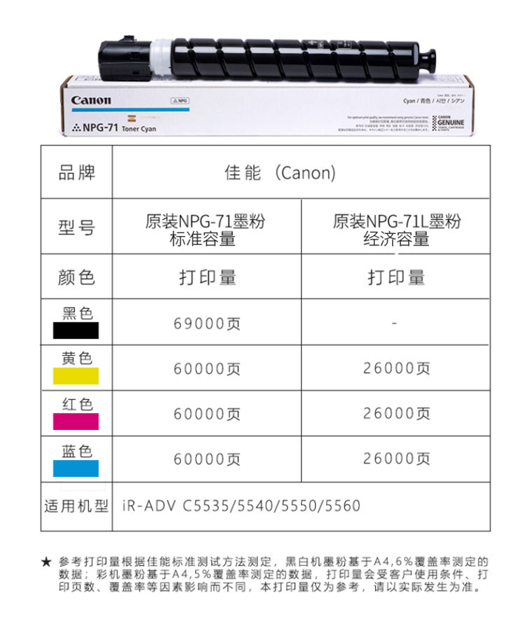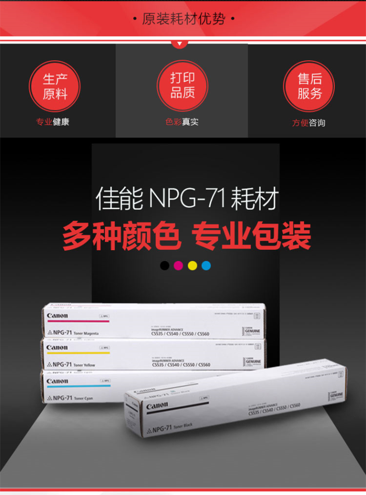 "佳能(Canon) NPG-71L Y 原装黄色墨粉盒碳粉 小容量(适用iR-ADV C5535/C5540/C5550/C5560)"商品可能已被商家删除,您可查看其他相似商品!