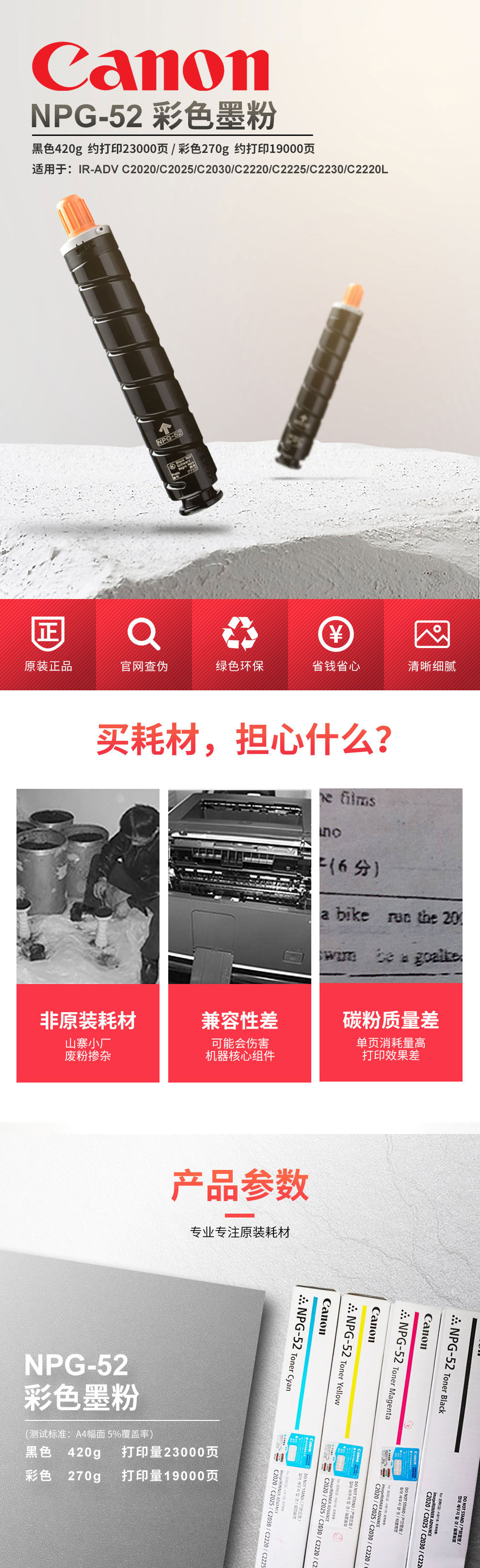 "佳能(Canon)NPG-52M 品红色墨粉(适用机型:iRC2020/C2025/2030/C2220/2225)"商品可能已被商家删除,您可查看其他相似商品!