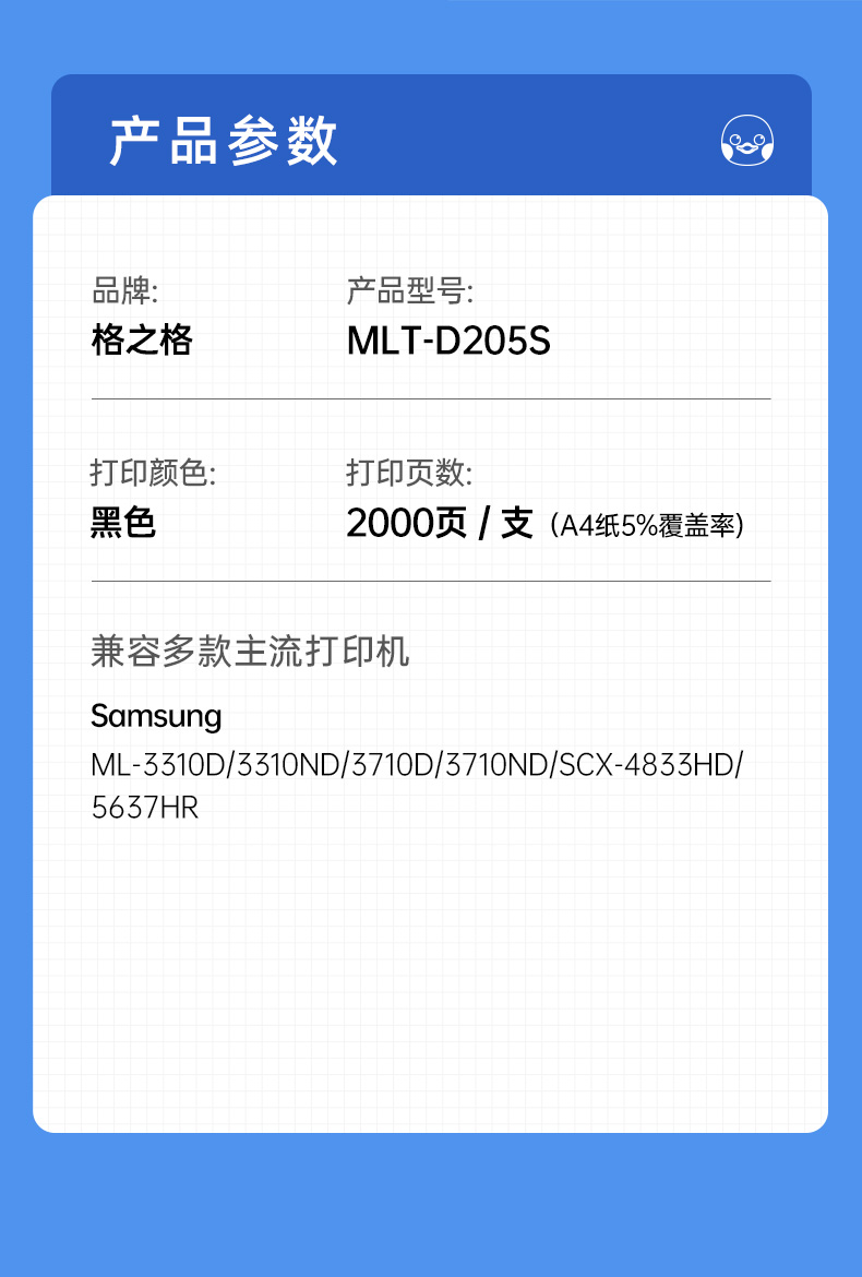 "格之格 MLT-D205S硒鼓NT-CNS205C适用三星ML-3310D ML-3310ND ML-3710D 3710ND SCX-4833HD 5637HR打印机粉盒"商品可能已被商家删除,您可查看其他相似商品!