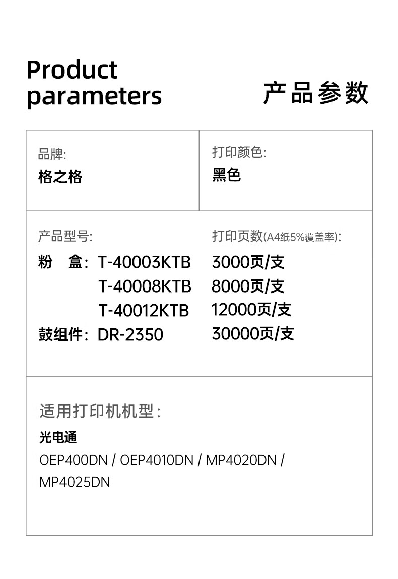 "格之格 全国产化信创鼓粉 适用光电通OEP400DN硒鼓OEP4010DN墨盒MP4020DN打印机粉盒MP4030DN T-40012KTB"商品可能已被商家删除,您可查看其他相似商品!