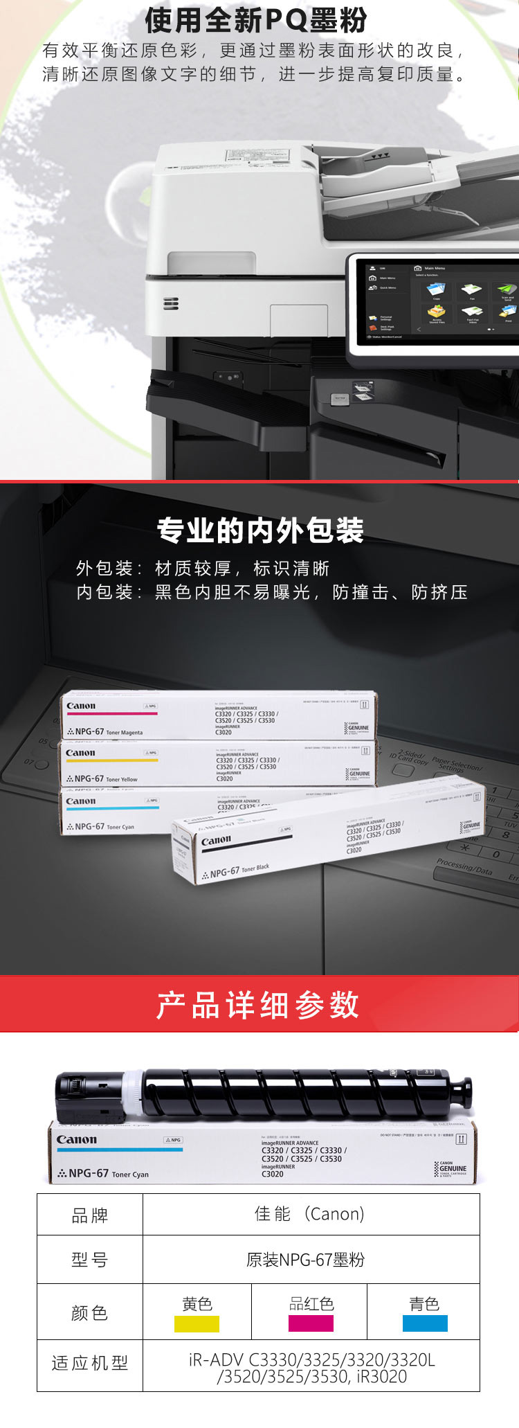 "佳能(Canon)NPG-67C青色标准容量墨粉 C3020/3025/3120L/3120/3125等"商品可能已被商家删除,您可查看其他相似商品!