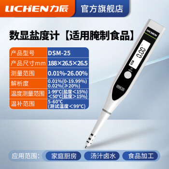 "力辰科技(lichen)盐度计测量仪食品汤汁卤水厨房咸度电子盐度表数显盐份测试笔 测量范围:0.01-26%腌菜专用"商品可能已被商家删除,您可查看其他相似商品!