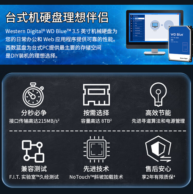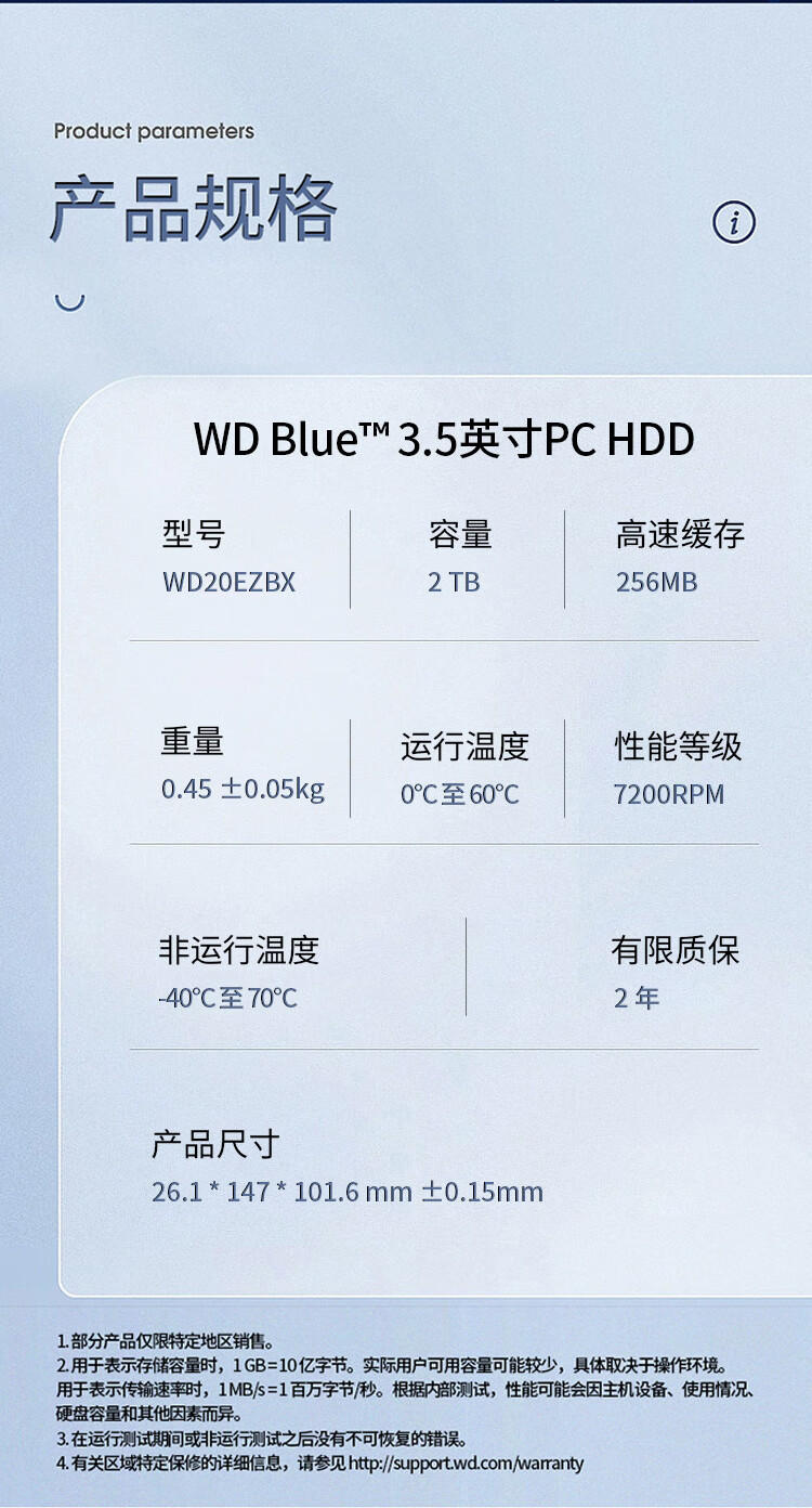 "西部数据 台式机机械硬盘 WD Blue 西数蓝盘 2TB 7200转 256MB SATA (WD20EZBX)"商品可能已被商家删除,您可查看其他相似商品!