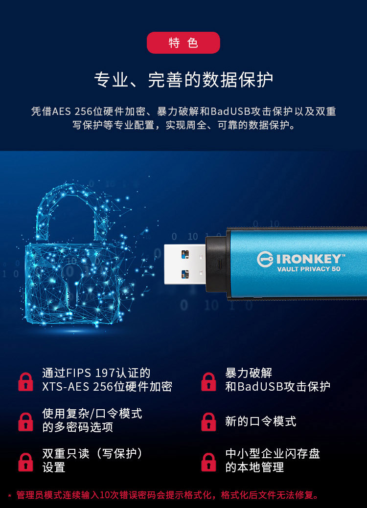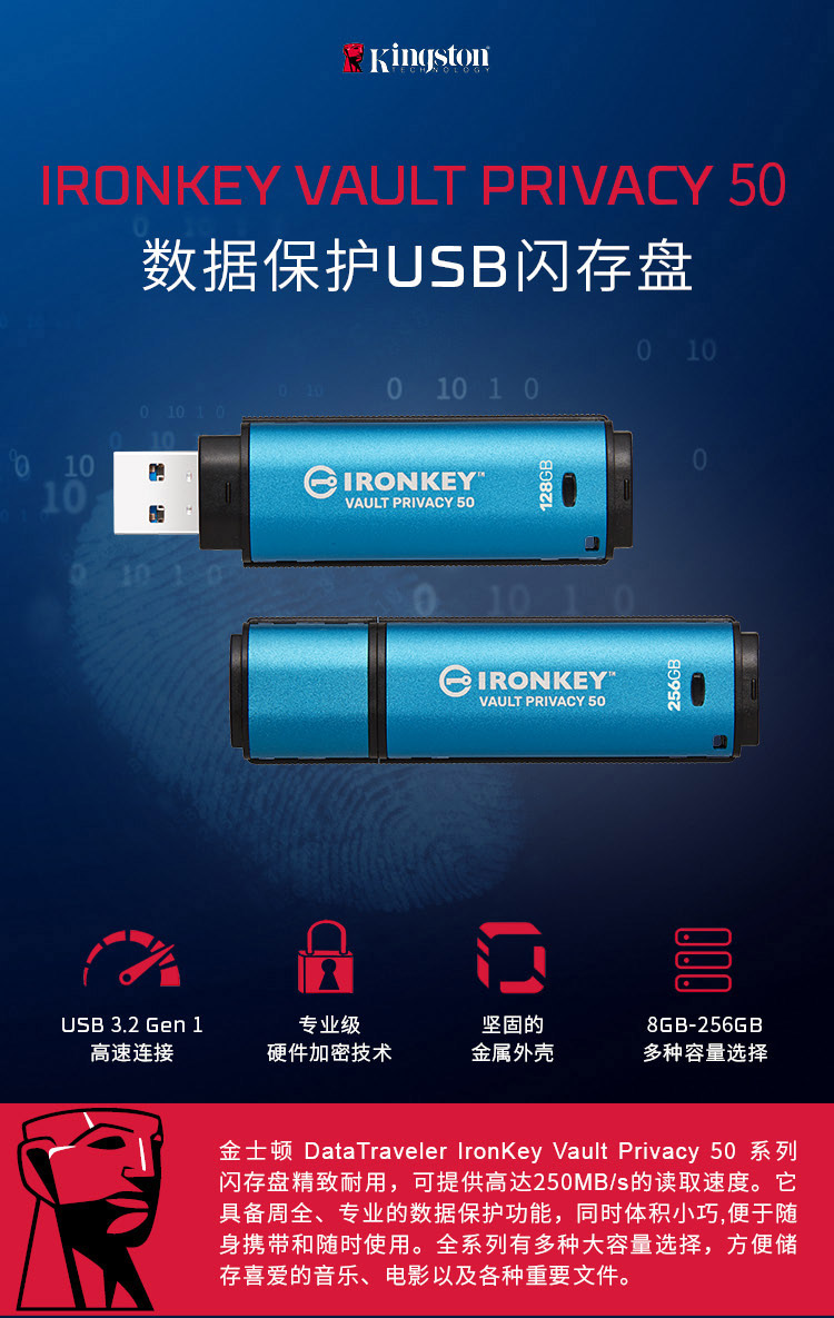 "金士顿(Kingston)32GB USB3.2 Gen1 U盘 IKVP50 256位AES专业硬件金属加密 双重写保护 读速高达250MB/s"商品可能已被商家删除,您可查看其他相似商品!