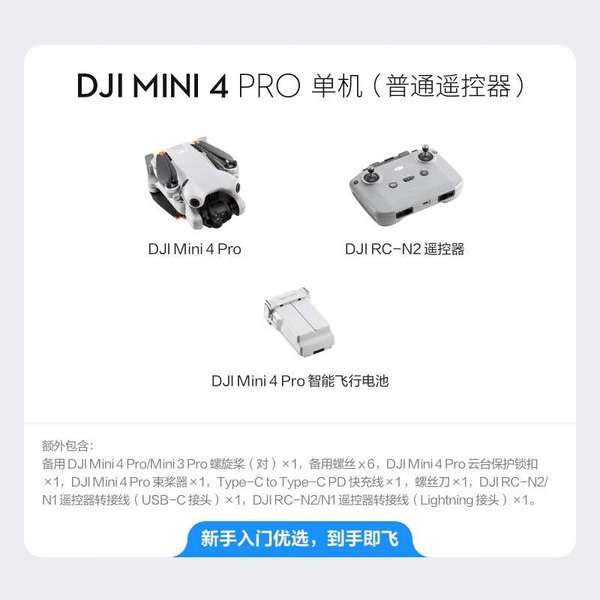 "大疆 DJI Mini 4 Pro 单机(普通遥控器版)全能迷你航拍机 入门级无人机 高清专业航拍 + 128G 内存卡"商品可能已被商家删除,您可查看其他相似商品!