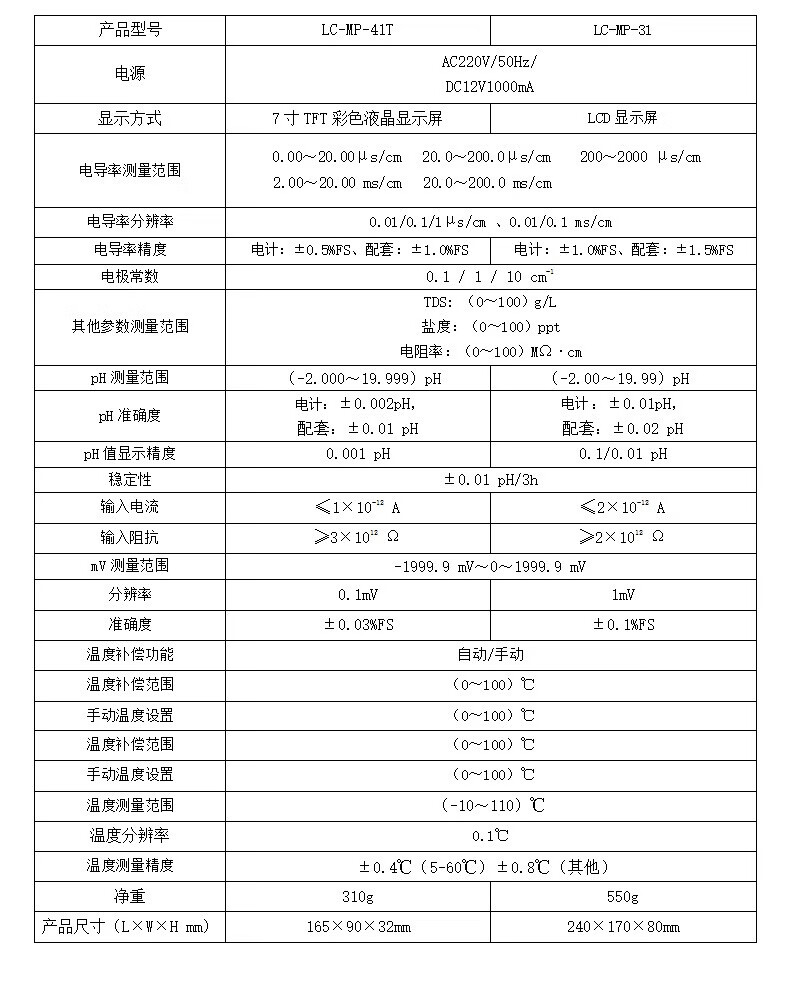"力辰科技(lichen)电导率仪TDS按键水质检测触摸屏台式二合一PH+电导LC-MP-41T"商品可能已被商家删除,您可查看其他相似商品!