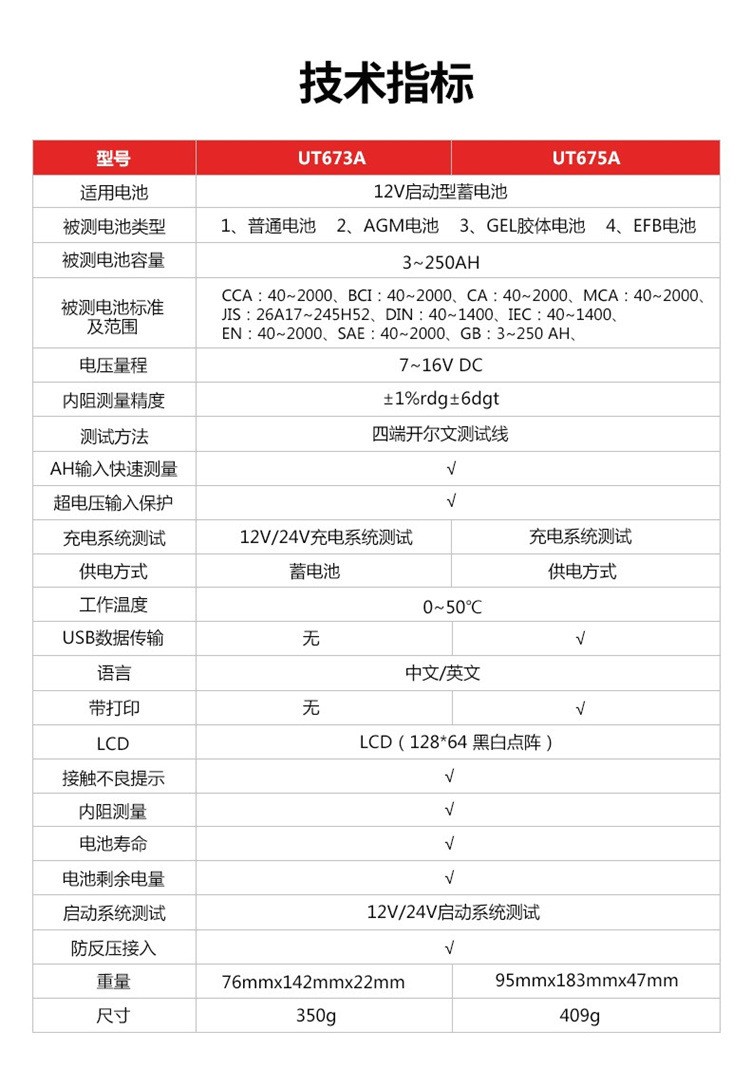"优利德UT675A 汽车蓄电池检测仪启动型电池寿命电瓶容量"商品可能已被商家删除,您可查看其他相似商品!