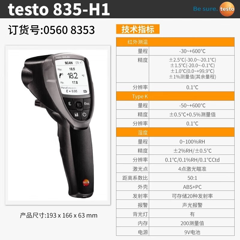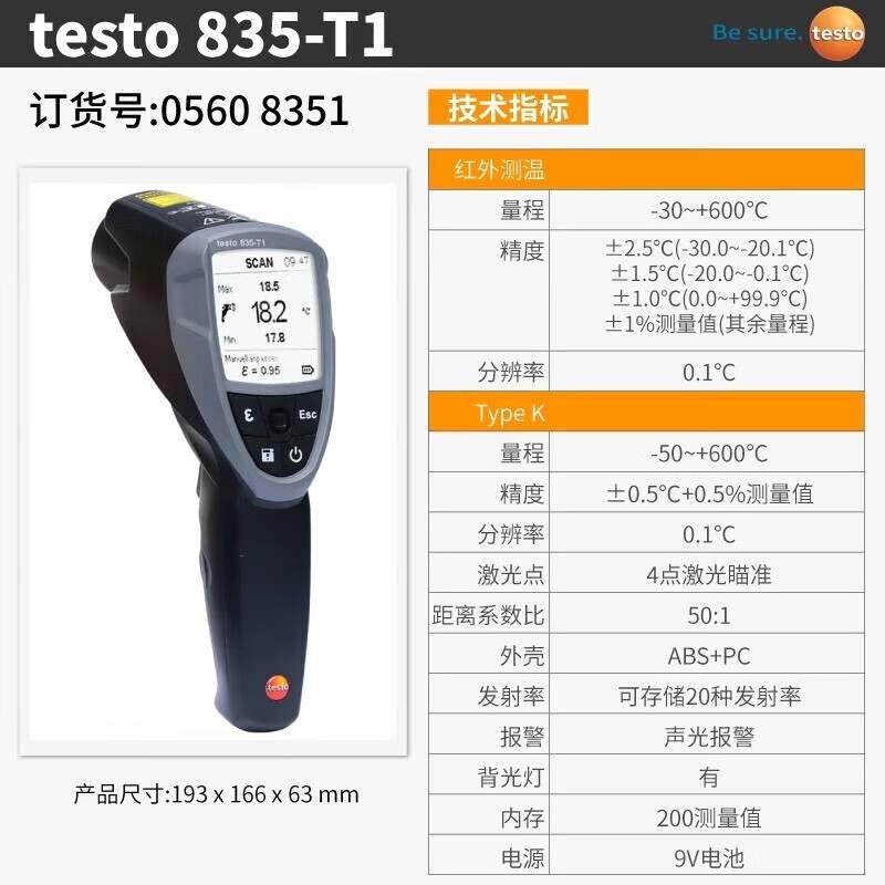 "TESTO德图红外线测温仪工业高精度手持式测温枪热像仪温度计物体测温枪 testo 835-T1"商品可能已被商家删除,您可查看其他相似商品!