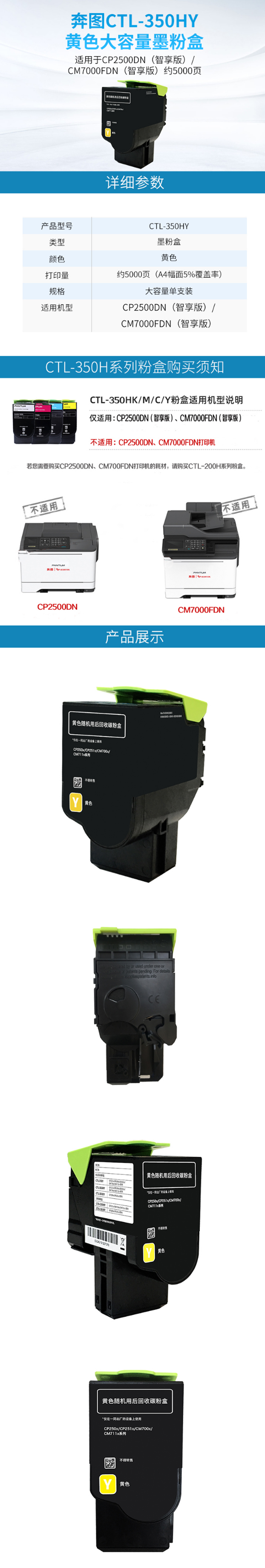 "奔图(PANTUM)CTL-350HY 原装墨粉盒 黄色大容量 适用于CP2510DN/CM7115DN/CP2500DN智享版/CP5055DN/CM5055DN"商品可能已被商家删除,您可查看其他相似商品!