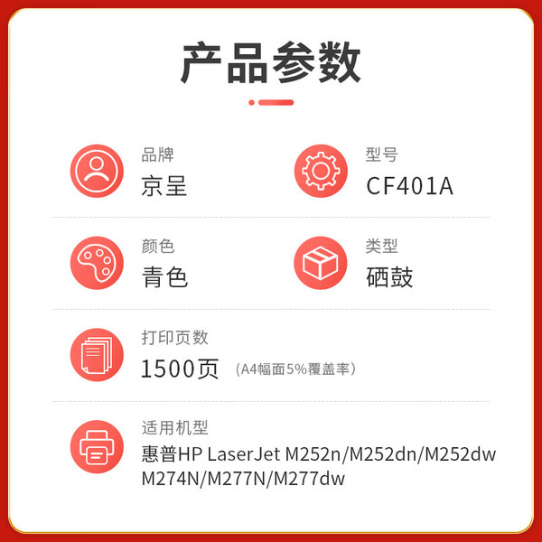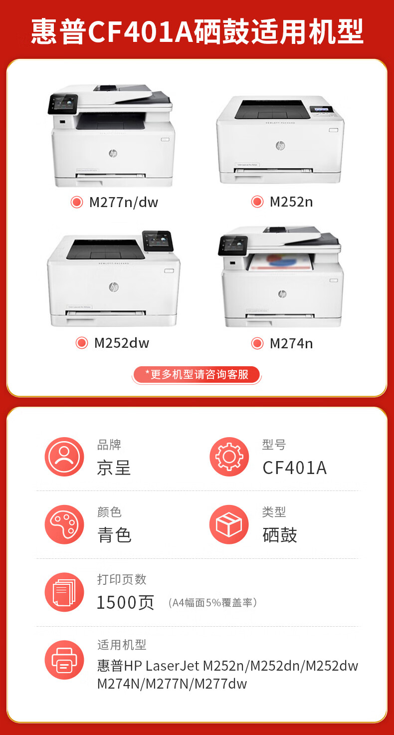 "京呈PLUS版CF401A硒鼓M252DW M277DW墨盒适用惠普彩色打印机硒鼓 M274n墨粉CF401A青色硒鼓易加粉"商品可能已被商家删除,您可查看其他相似商品!