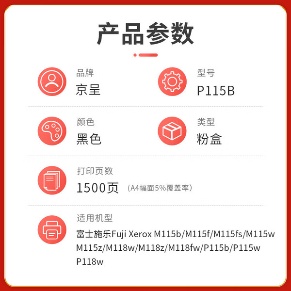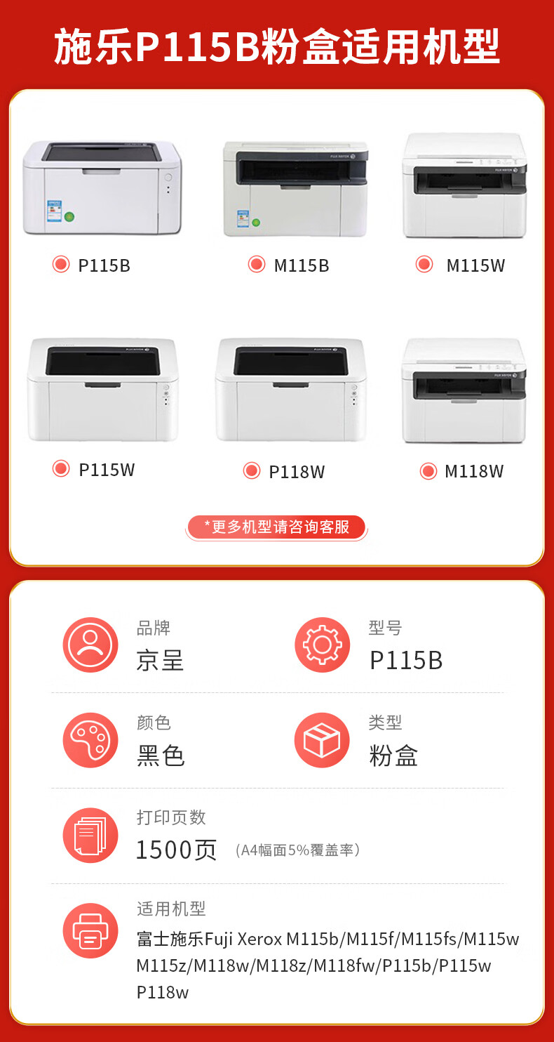 "京呈PLUS版本P115b粉盒适用富士施乐M115b硒鼓M118w墨粉MF115FS P115W P118w墨盒 黑色 P115B墨粉盒"商品可能已被商家删除,您可查看其他相似商品!