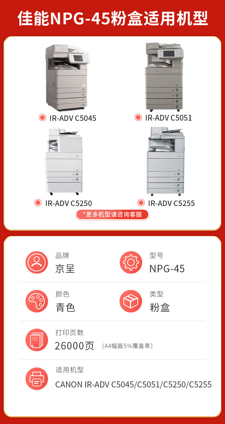 "京呈PLUS版适用佳能NPG-45粉盒C5045 5051墨盒5250碳粉5255墨粉G45彩色硒鼓GPR30 26000页青(蓝)色大容量粉盒"商品可能已被商家删除,您可查看其他相似商品!