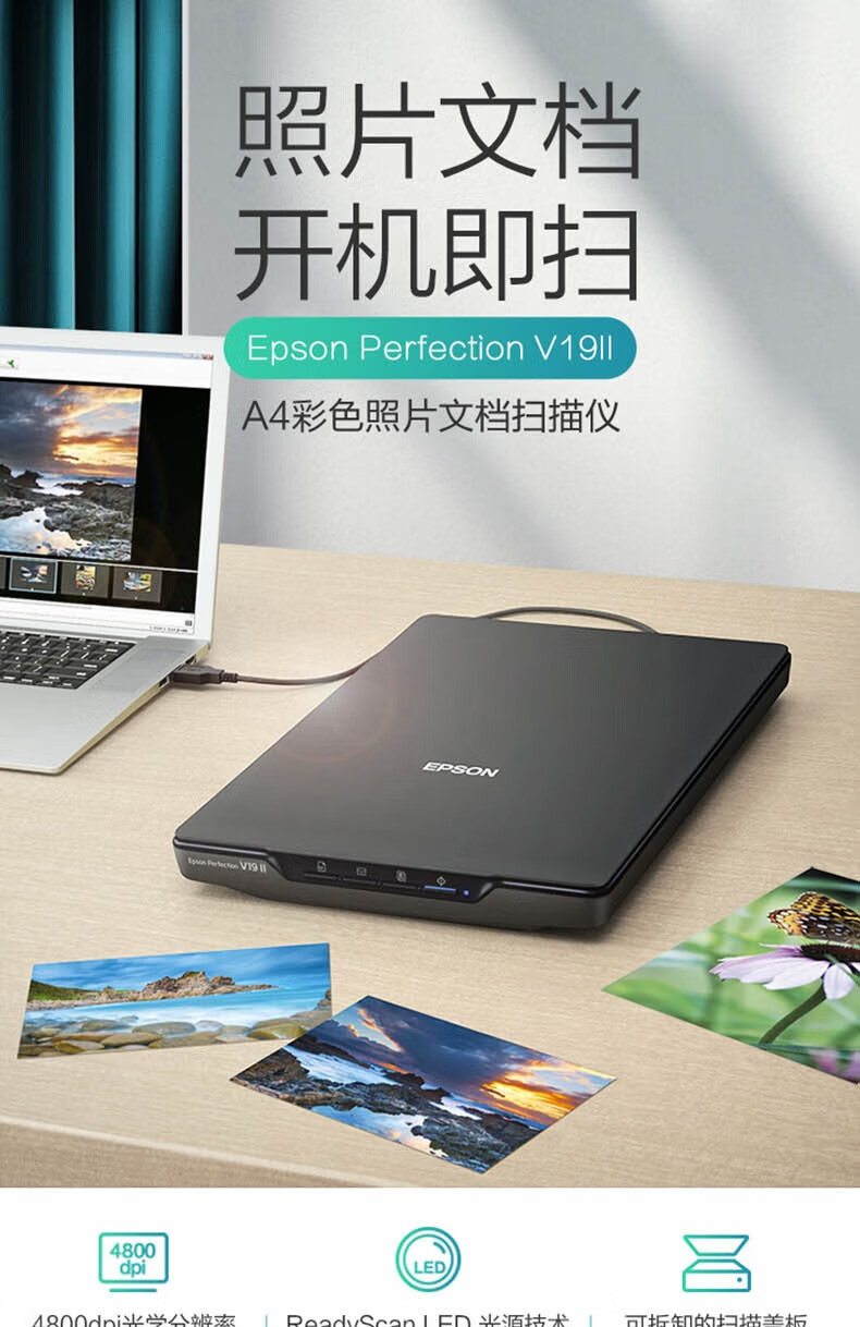 "爱普生(EPSON)Perfection V19II A4平板扫描仪 高清彩色照片文档扫描 USB供电 4800dpi"商品可能已被商家删除,您可查看其他相似商品!