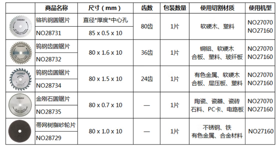 应用 : 切割 软硬木,塑料 |