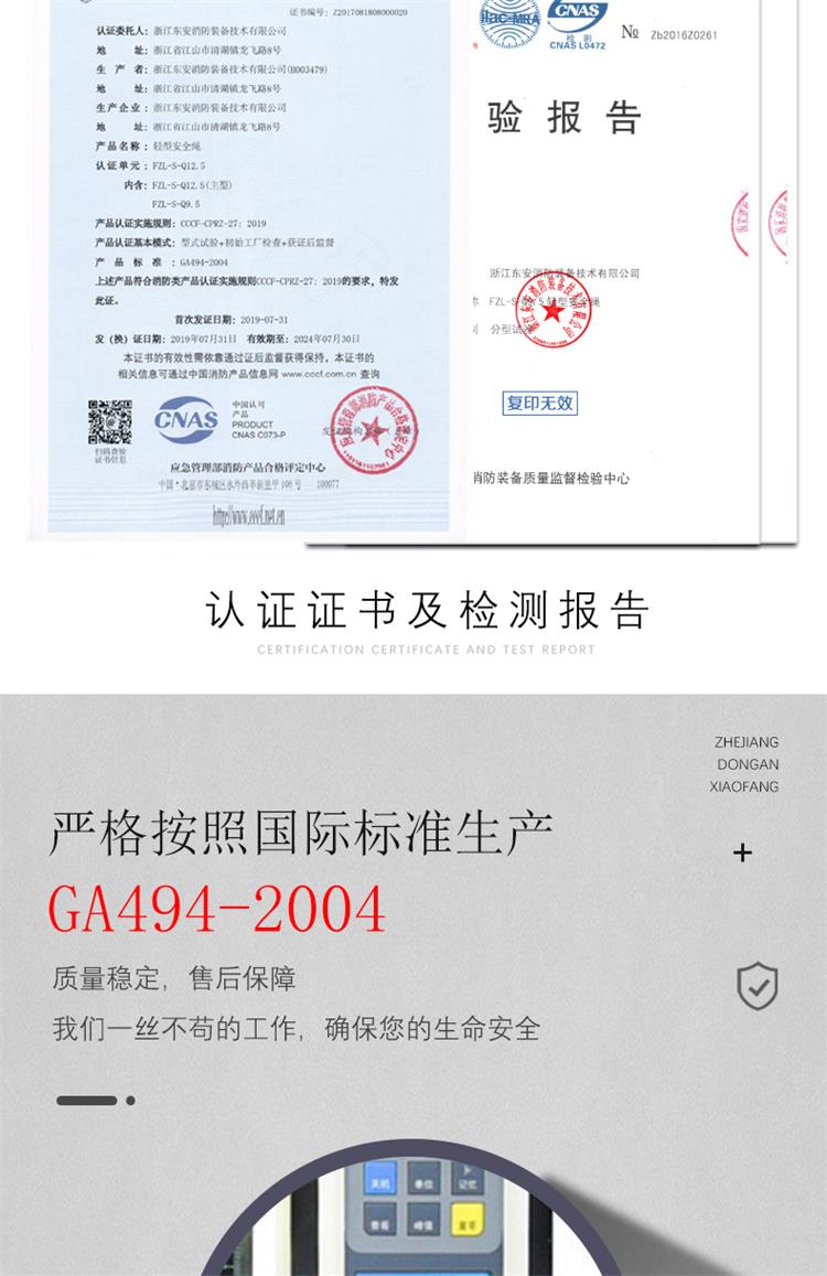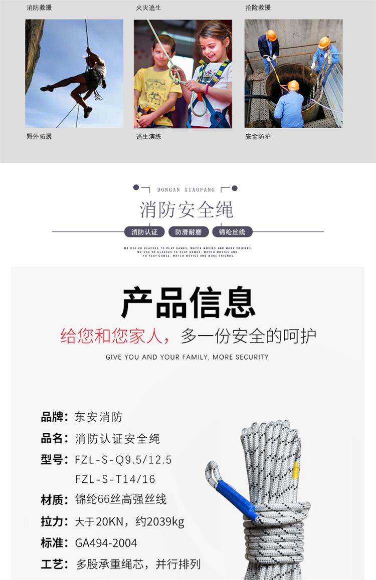 产品名称:消防救援安全绳 产品型号:FZL-S-Q12.5 厂家:浙江东单 绳子长度:20M