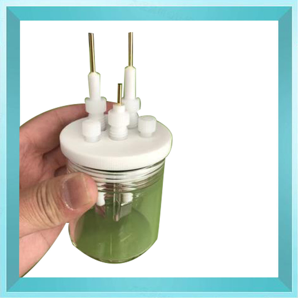 密封电解槽,杯子螺纹口,盖子螺纹盖子,盖子上面有3个6.2mm电极孔(孔径可以根据您的要求适当加大),2个3mm进出气孔。且电极孔和进出气孔,带密封螺栓,里面有密封圈,通过拧紧密封螺栓进行密封(插入合适电极,或者气管后才能密封)